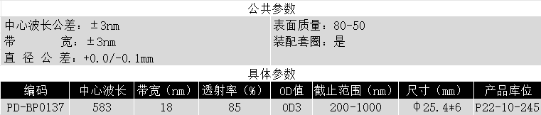 BP583/18K OD3@200-1000 T>85% Φ25.4*6 带通滤光片 (带套圈)