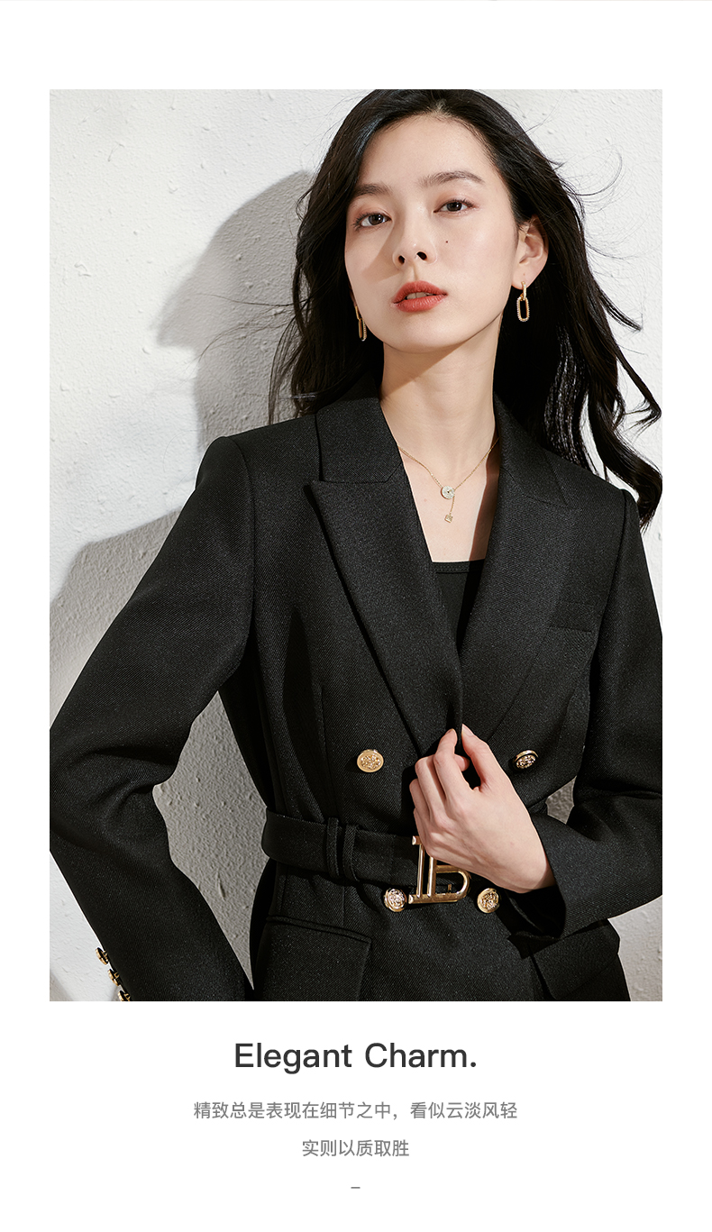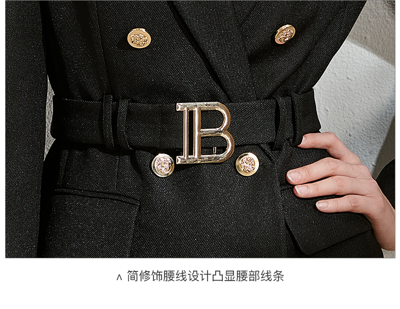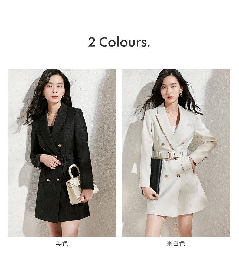 芳外新款气质通勤OL西装领连衣裙双排扣收腰修身短裙8T22AW0082