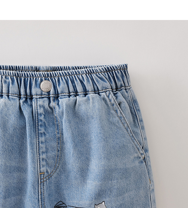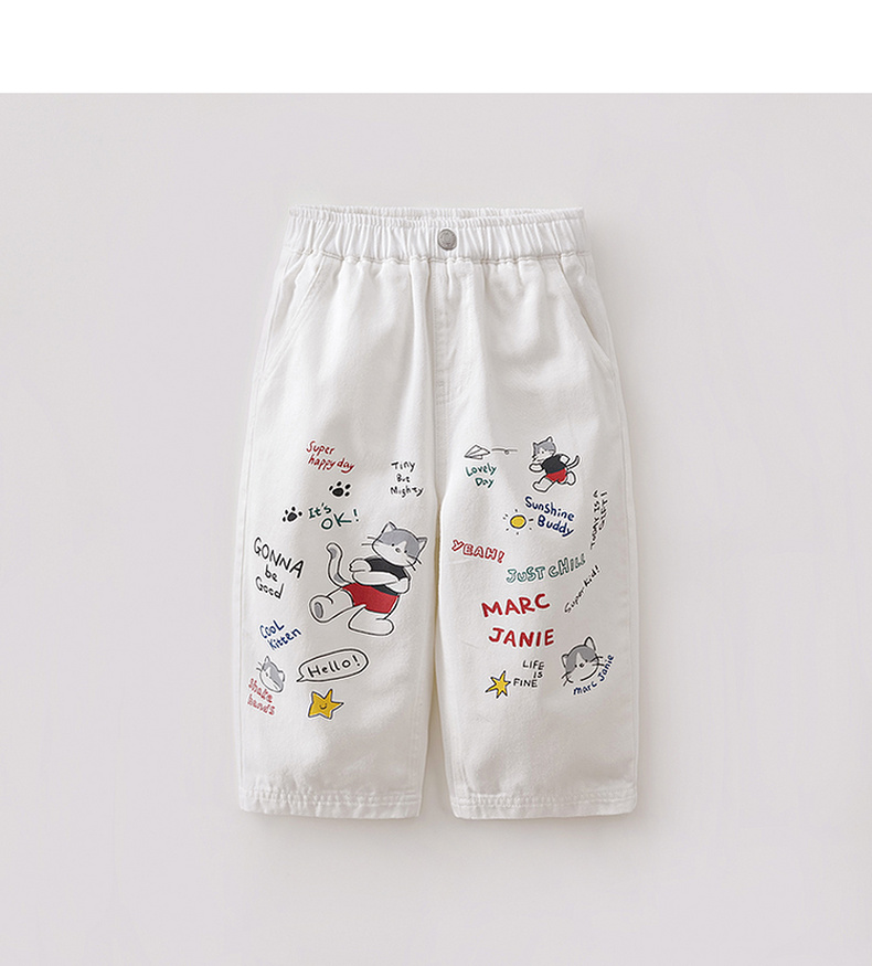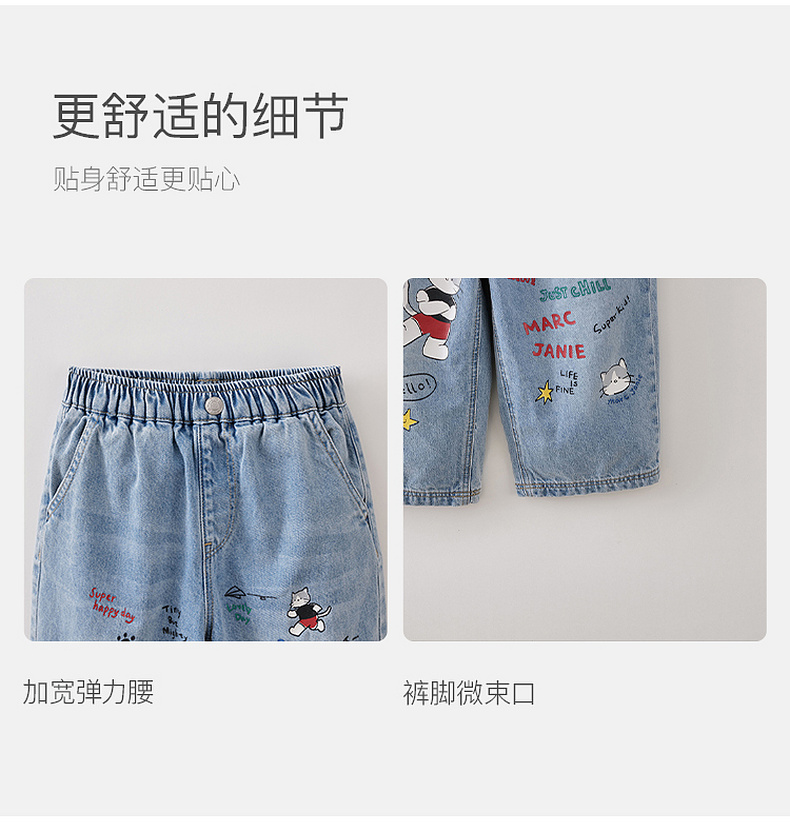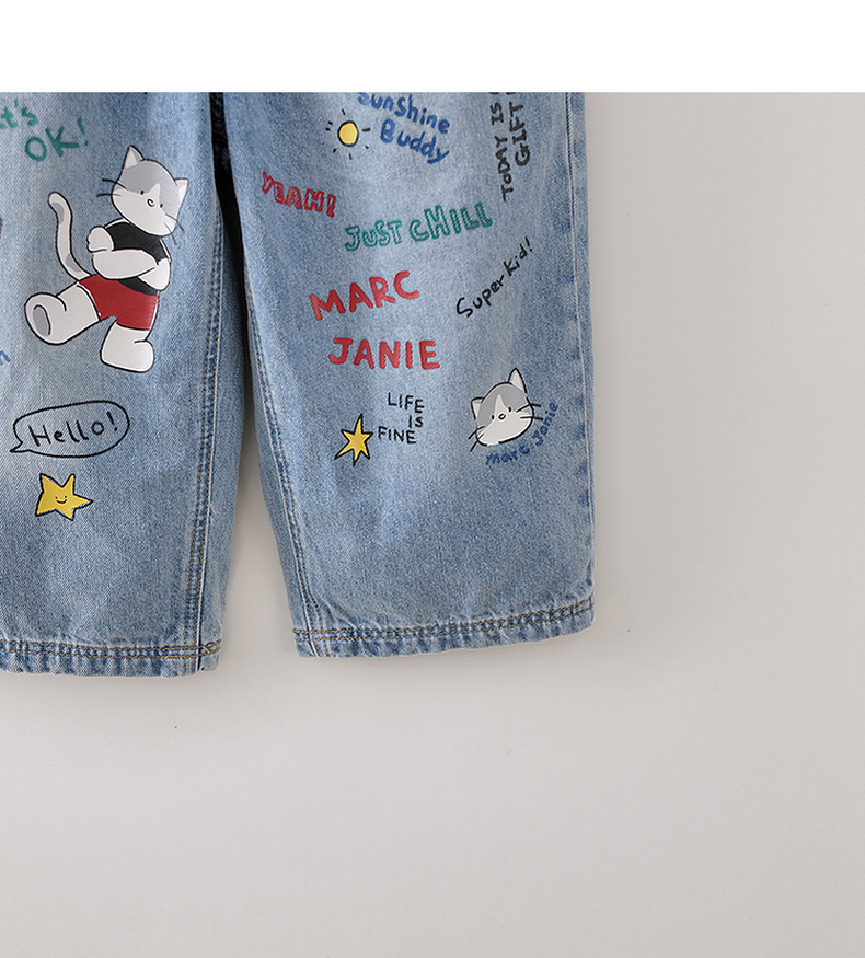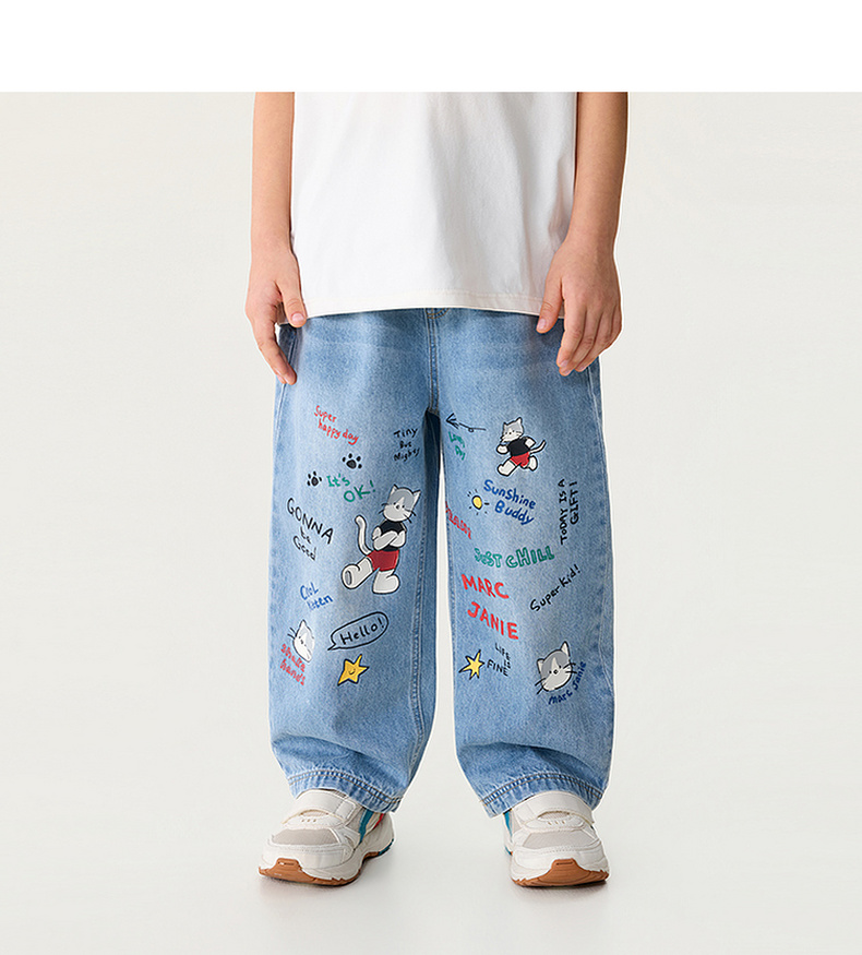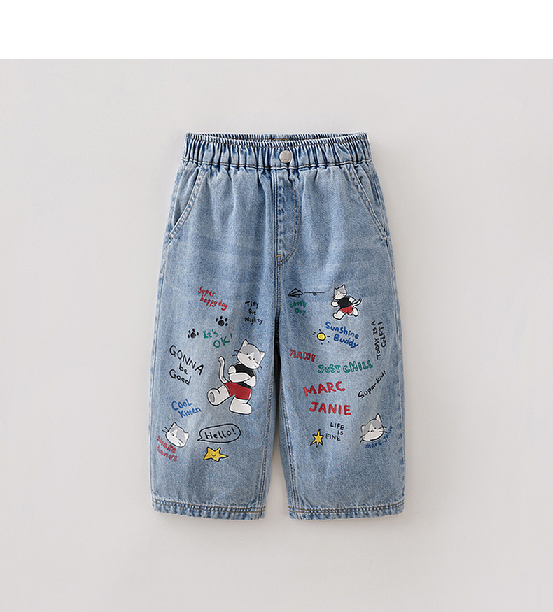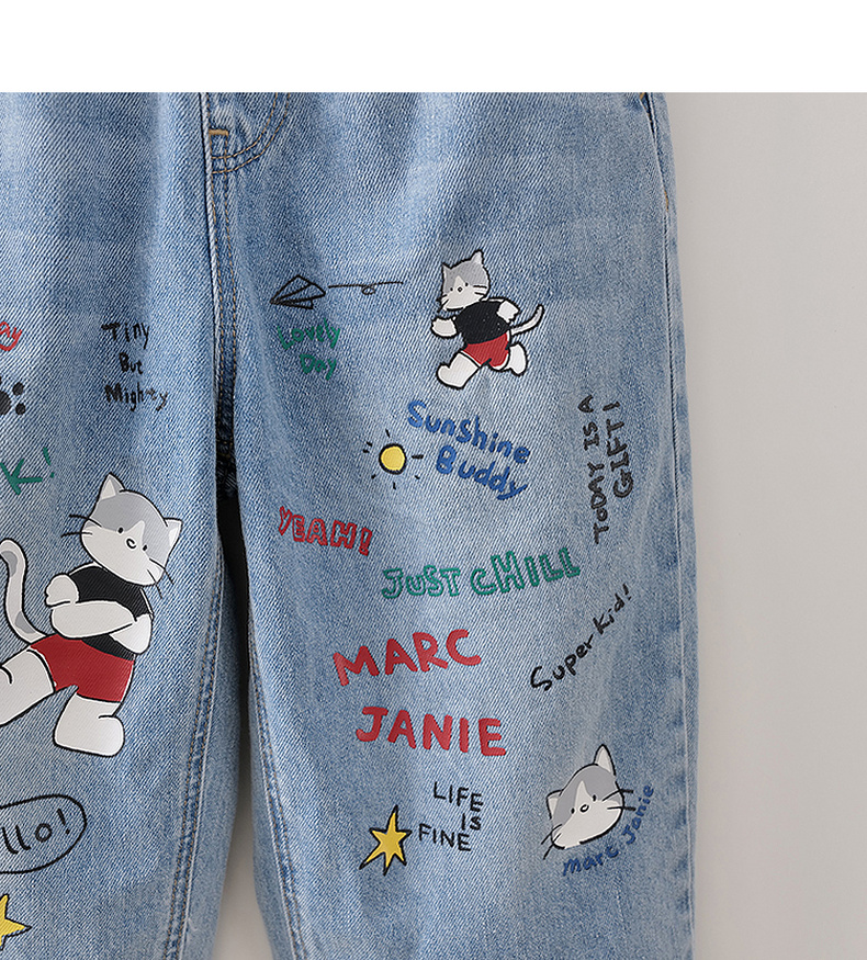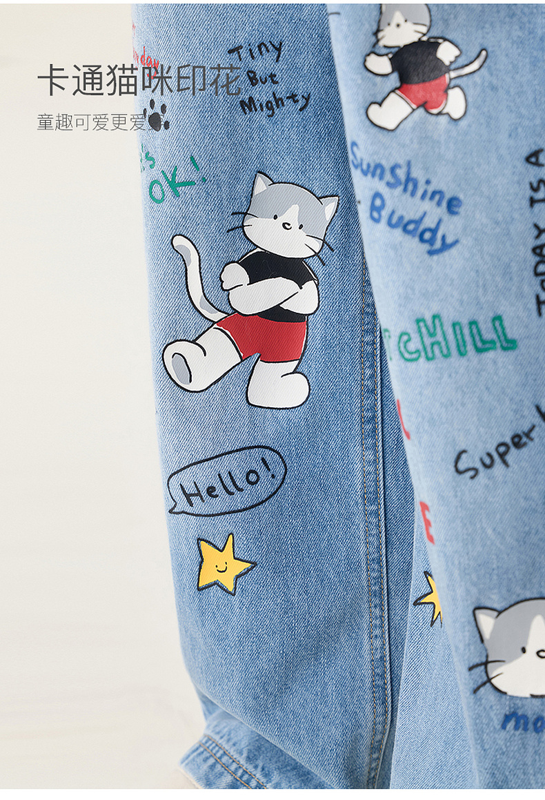 马克珍妮快乐猫咪男童纯棉直筒牛仔裤2026年春装新款560380
