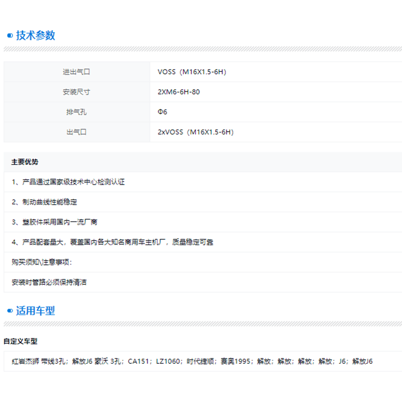 手制阀双腔解放J6 常用型 主刹 带快插接头3508015-50A-W万安