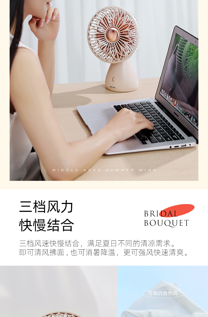 向物(SOTHING)小风扇usb小型电风扇桌面静音小台扇【桌面风扇-手捧花】