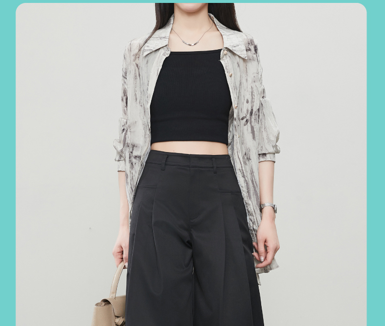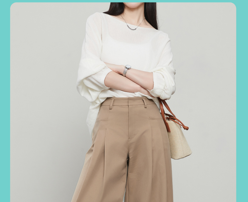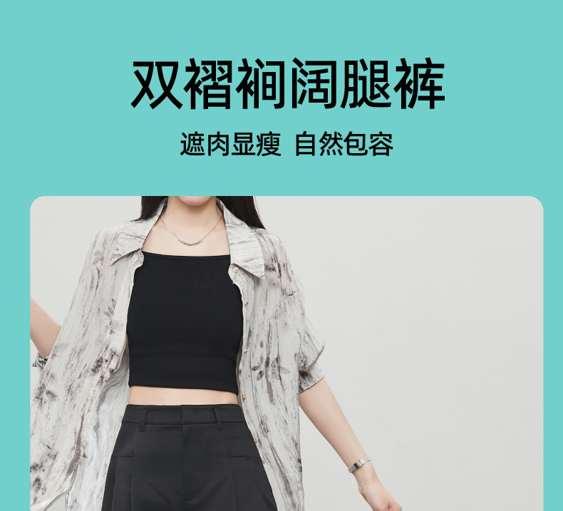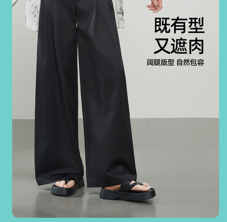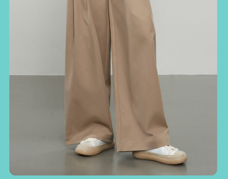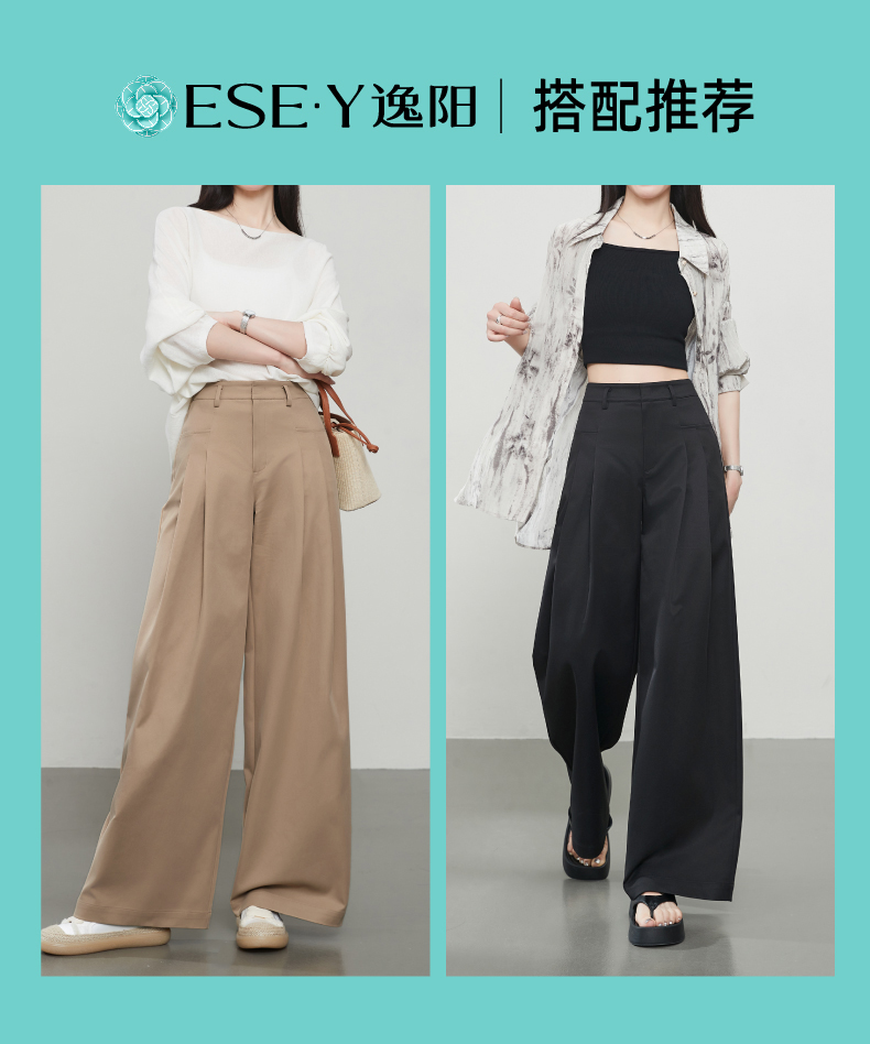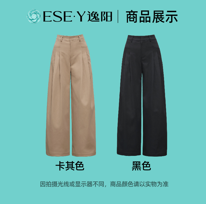 【秋新品-双褶裥阔腿】逸阳高腰显瘦百搭宽松直筒休闲裤子5827