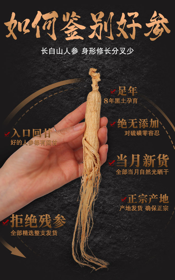 【超值100元购】8年长白山人参礼盒(大号人参5只)+安安卡一张