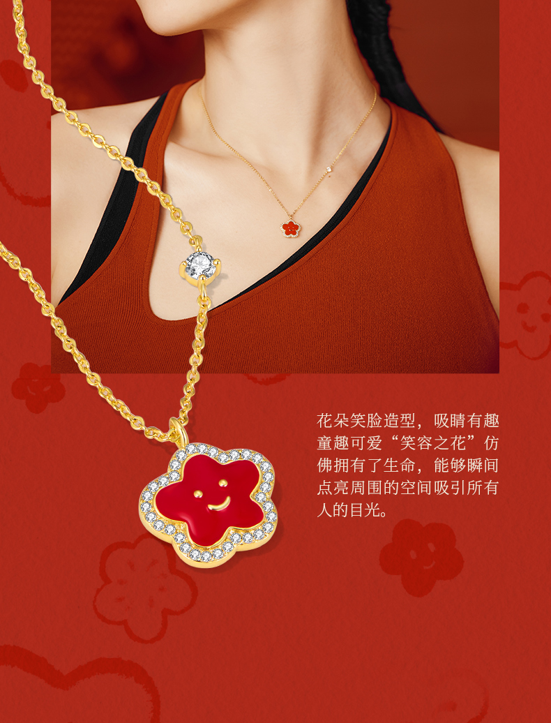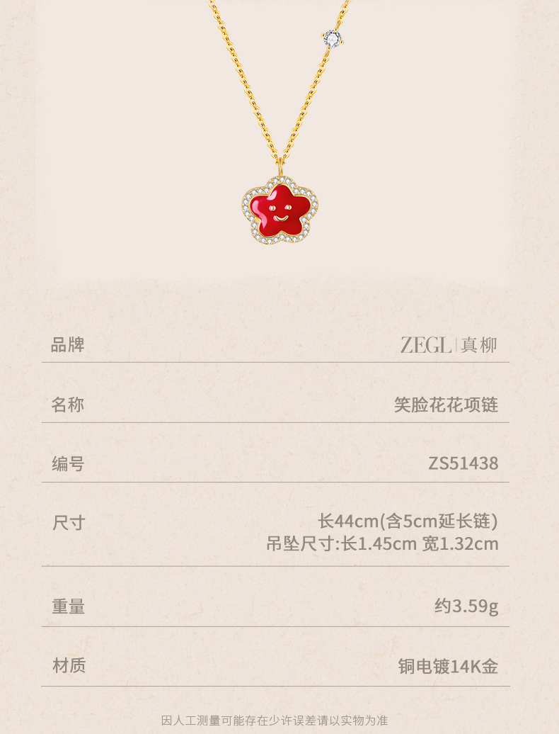 ZEGL真柳设计师小红花系列笑脸花花项链女款2024新款简约秋冬配饰