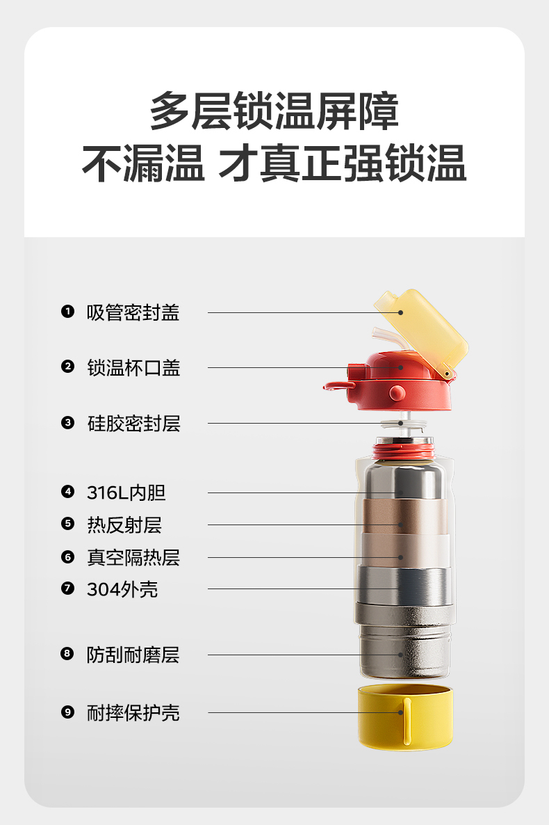 【积分商城】babycare儿童保温杯四合一宝宝水杯 吸管水杯壶 550ml