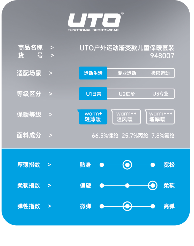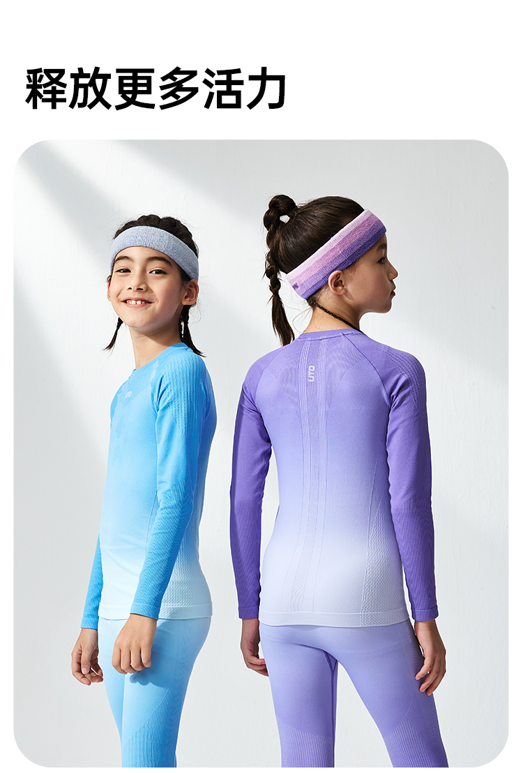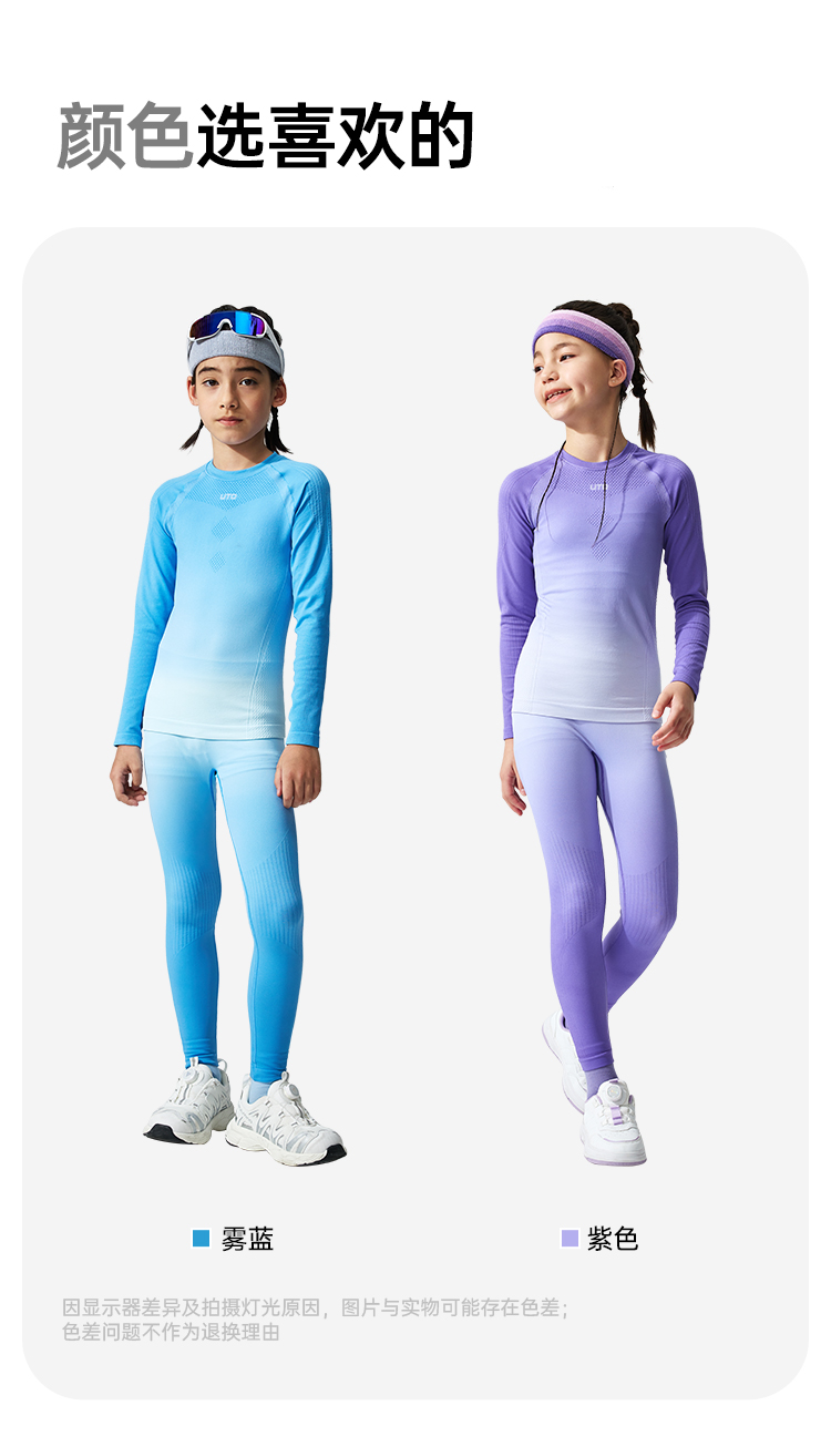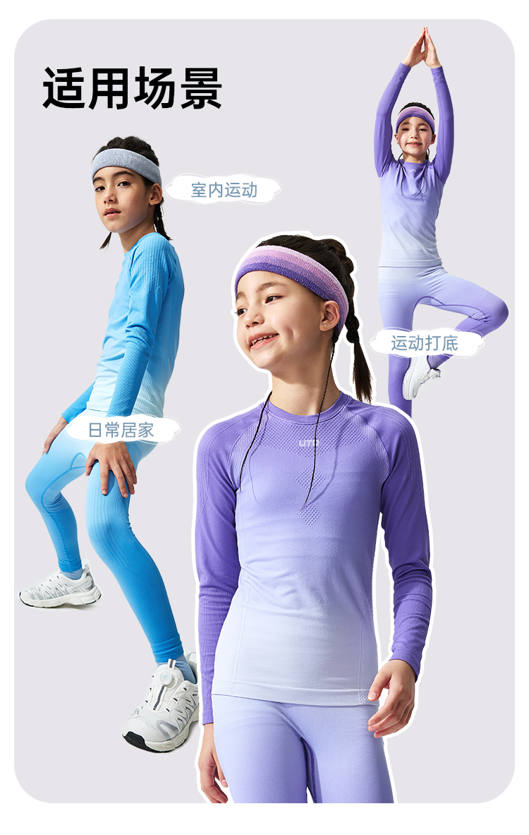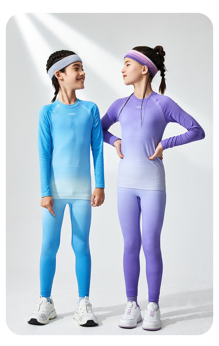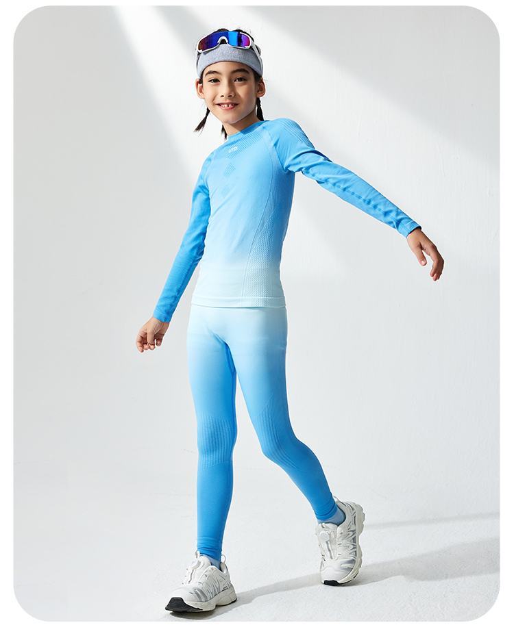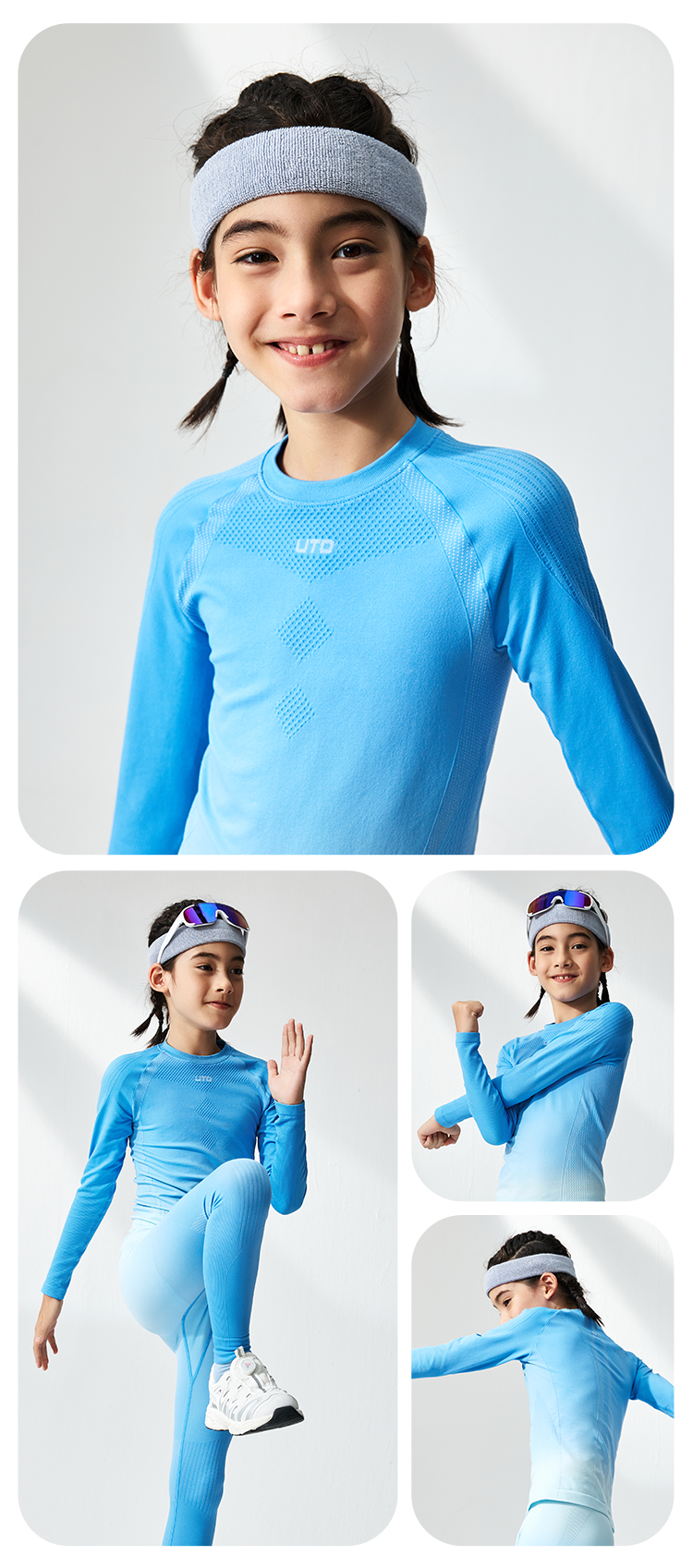 UTO/悠途户外运动渐变款儿童保暖套装秋冬季紧身圆领弹力速干长袖