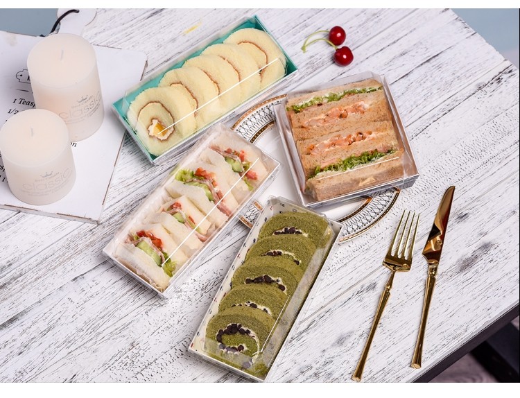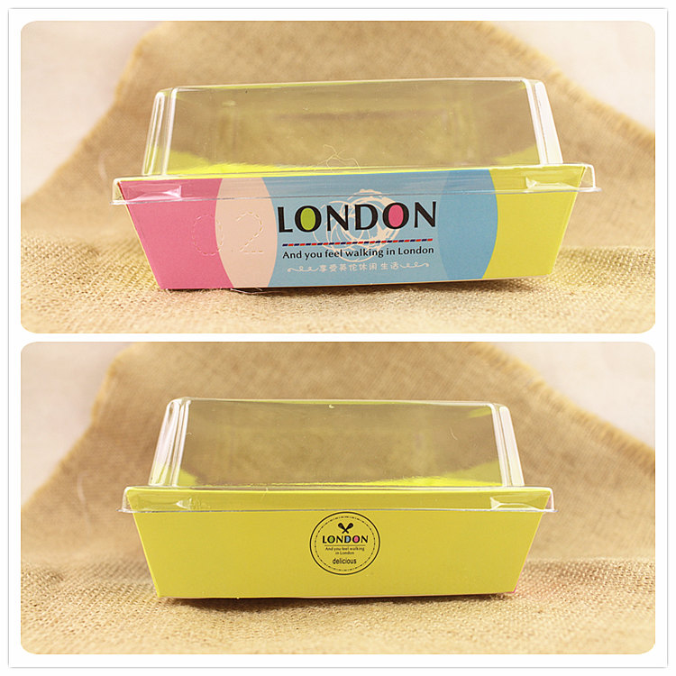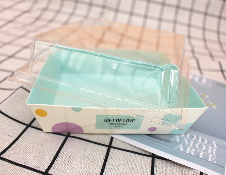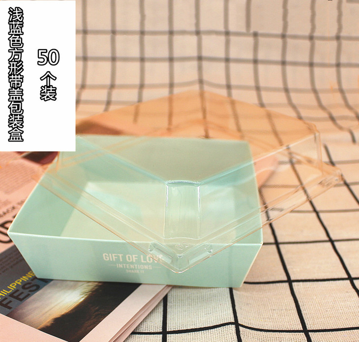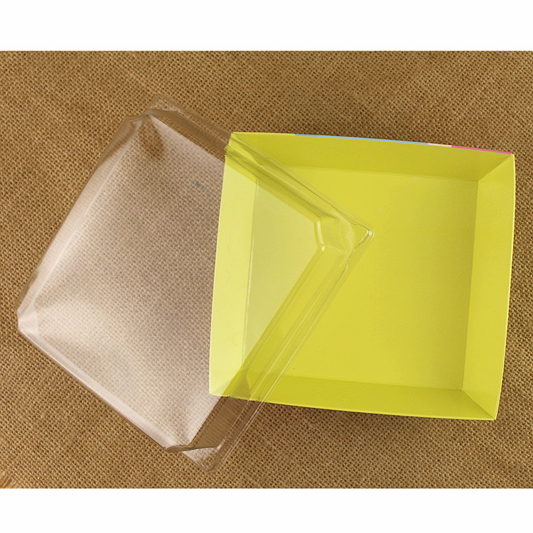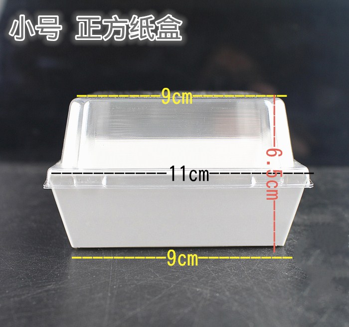 正方纸底盒带盖5个装/50个装 芝士蛋糕卷泡芙蛋黄酥打包盒 透明塑料盖