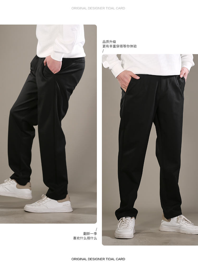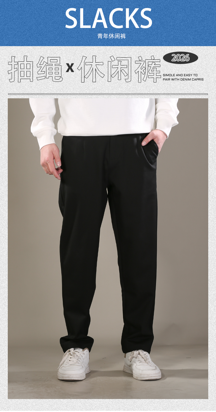 DRONKOO 2026 半松紧腰左金属扣后口袋绣线针织中厚休闲长裤