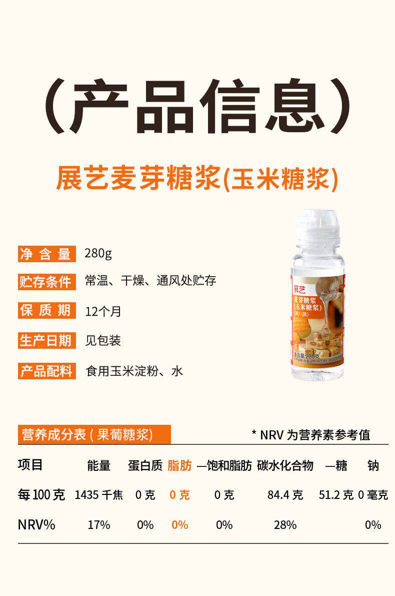 280g 展艺麦芽糖浆 玉米糖浆 透明稀水饴牛轧糖棒棒糖烘焙原料