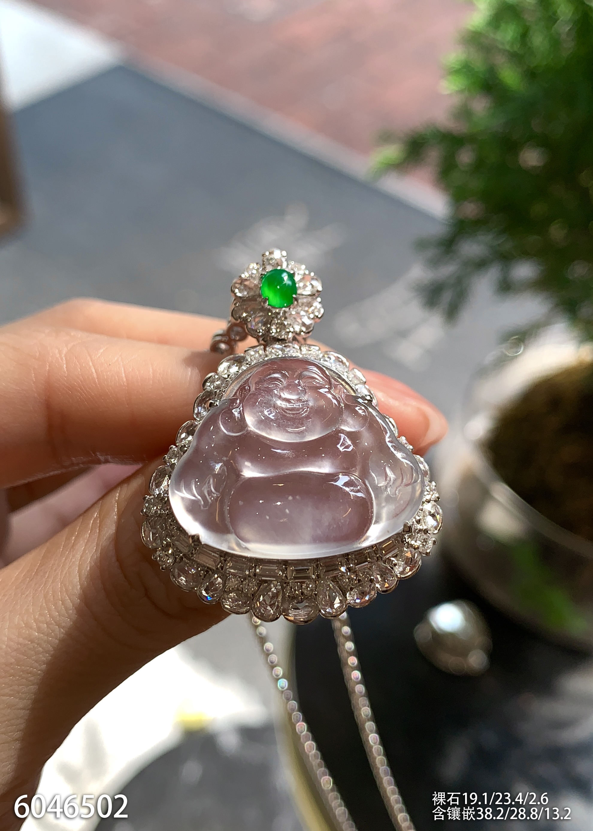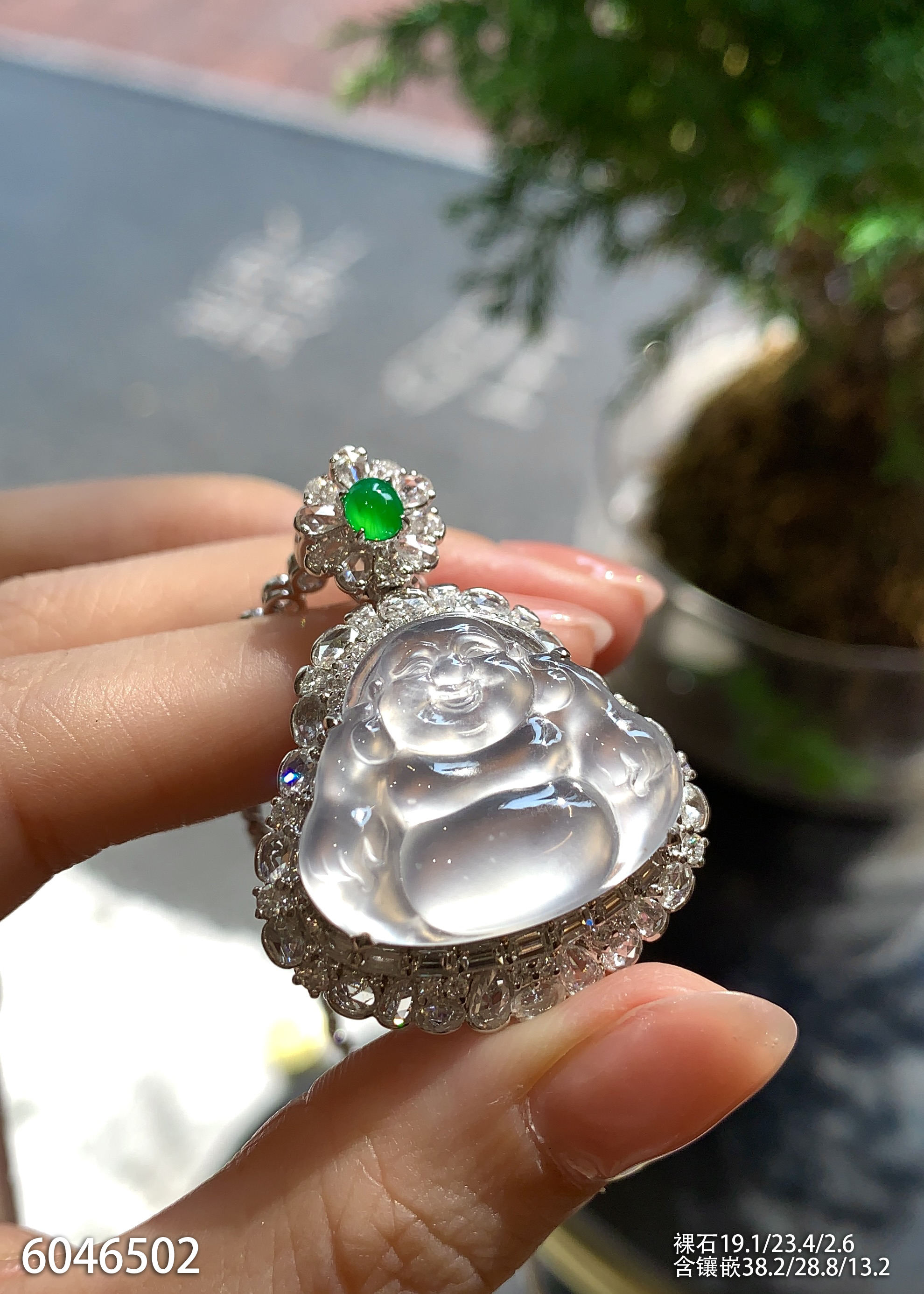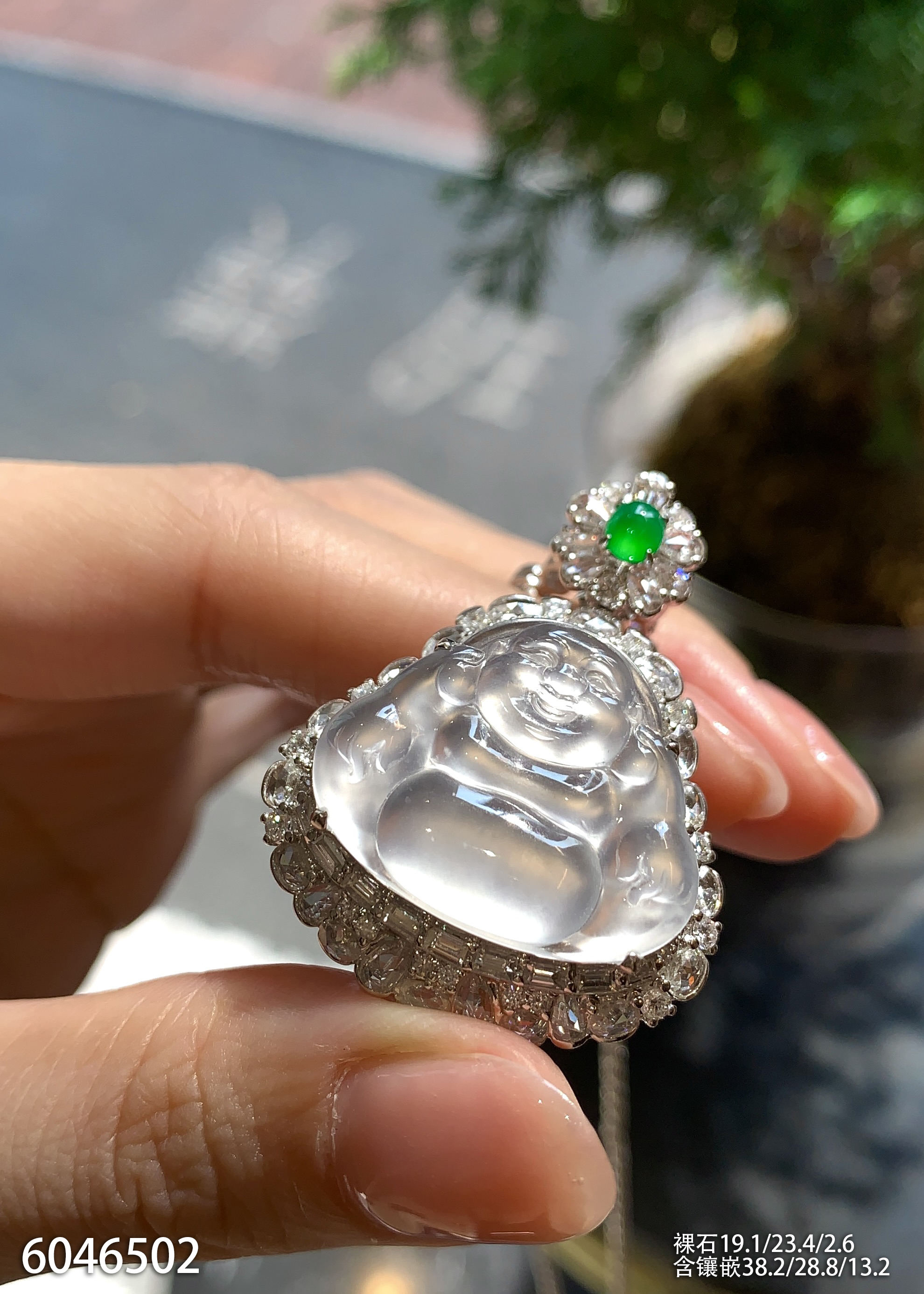 玻璃种飘翠玉兰花吊坠【6250203】具体价格微信咨询