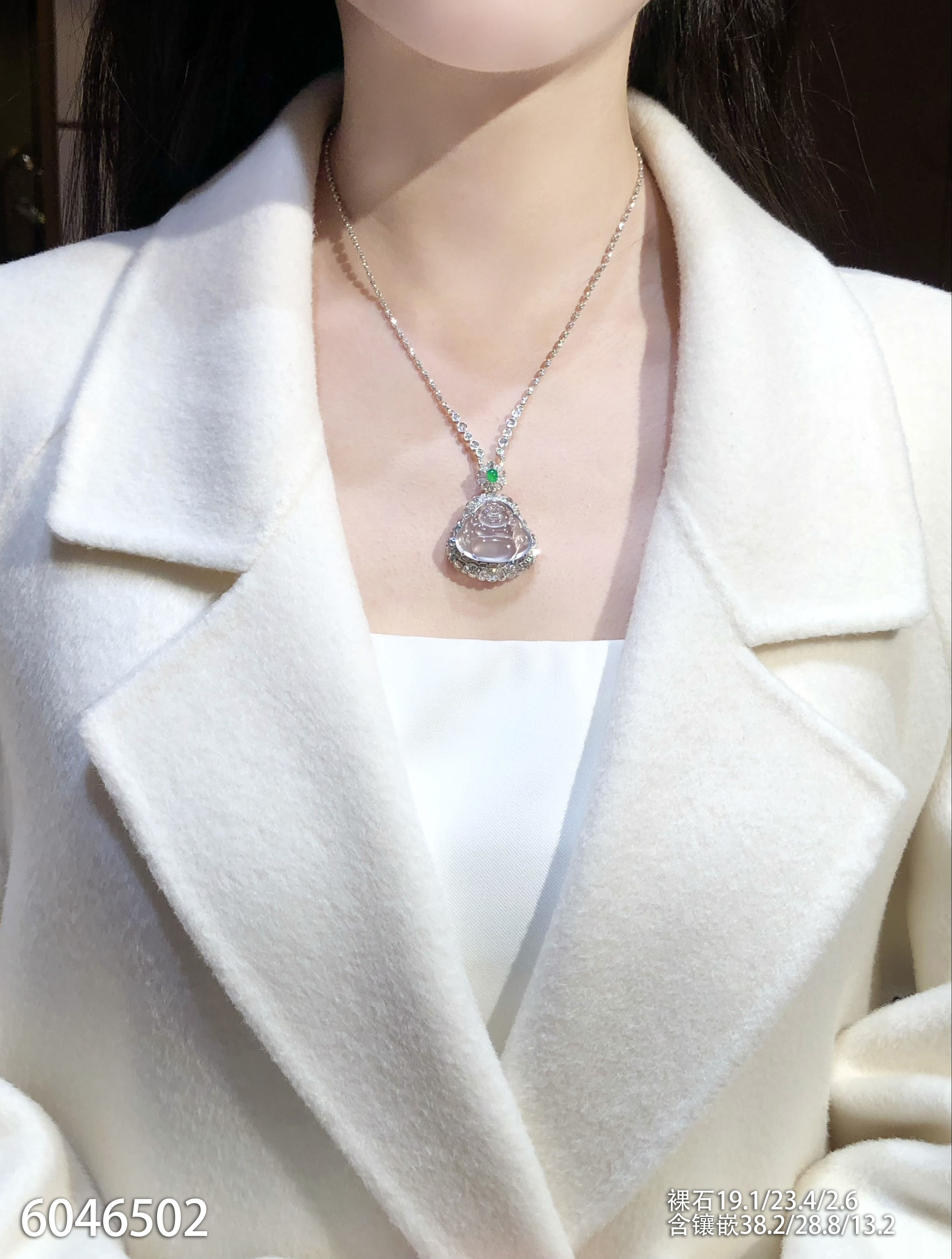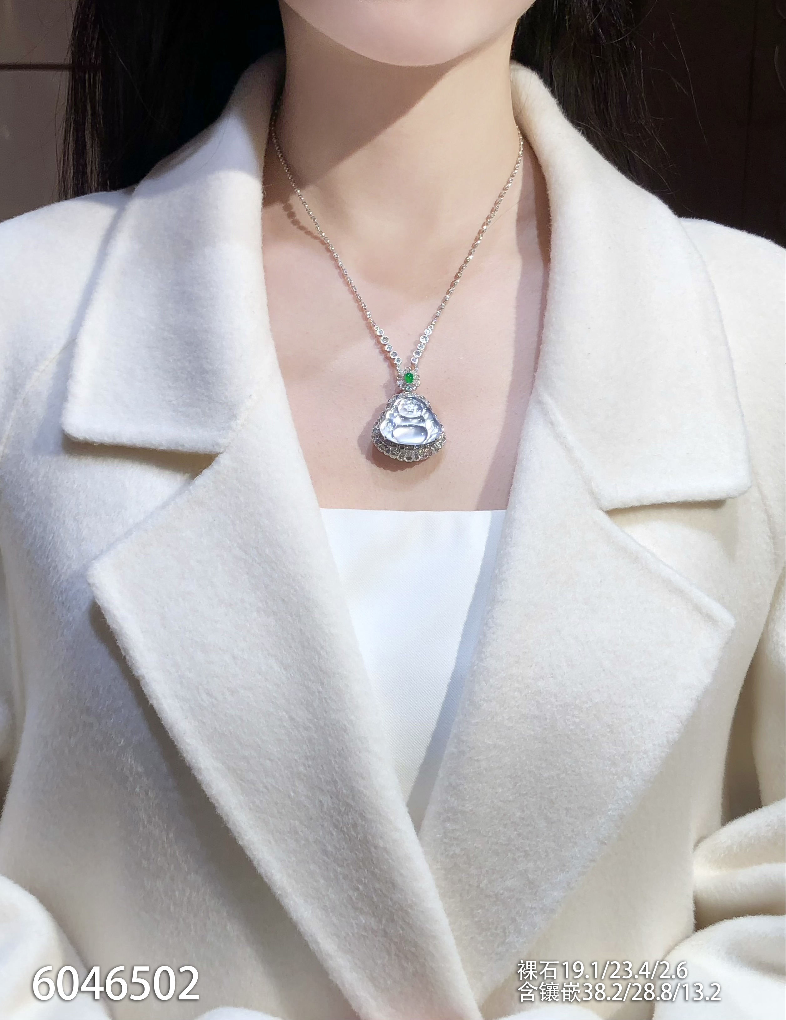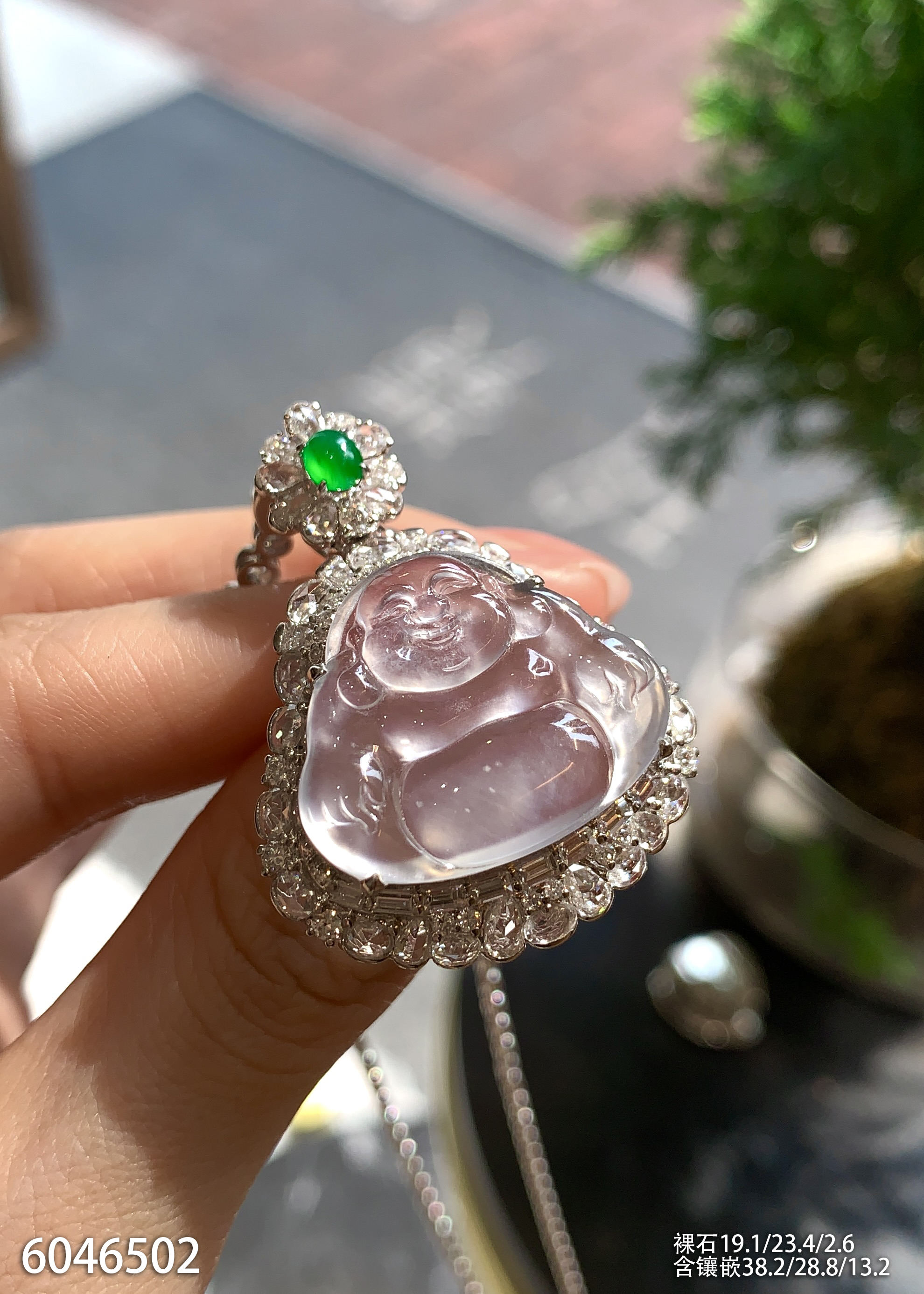 玻璃种飘翠玉兰花吊坠【6250203】具体价格微信咨询