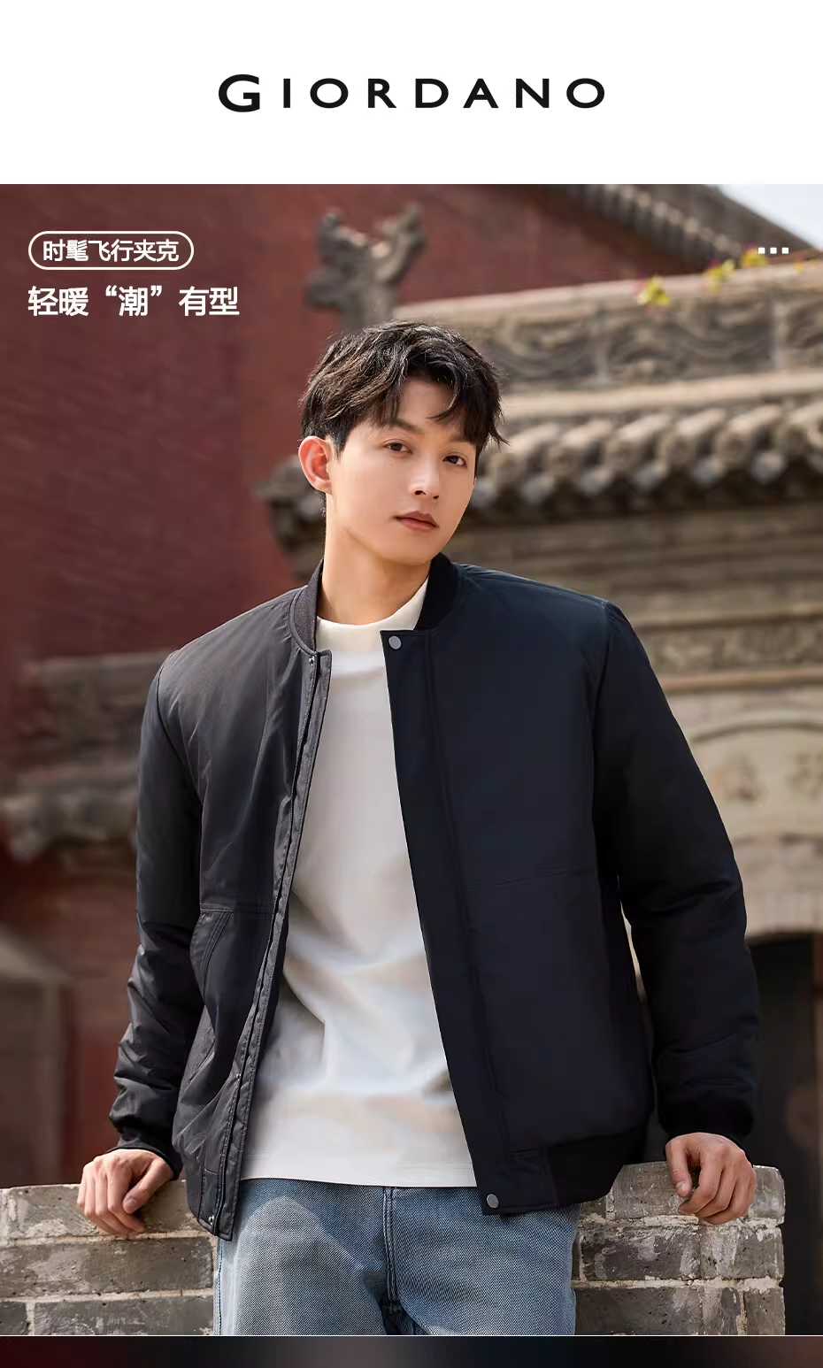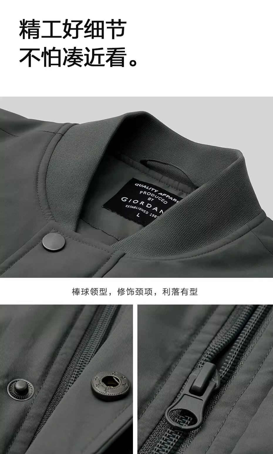 佐丹奴男装25年秋冬新款棉衣外套斜口袋棒球领飞行员夹克13075860
