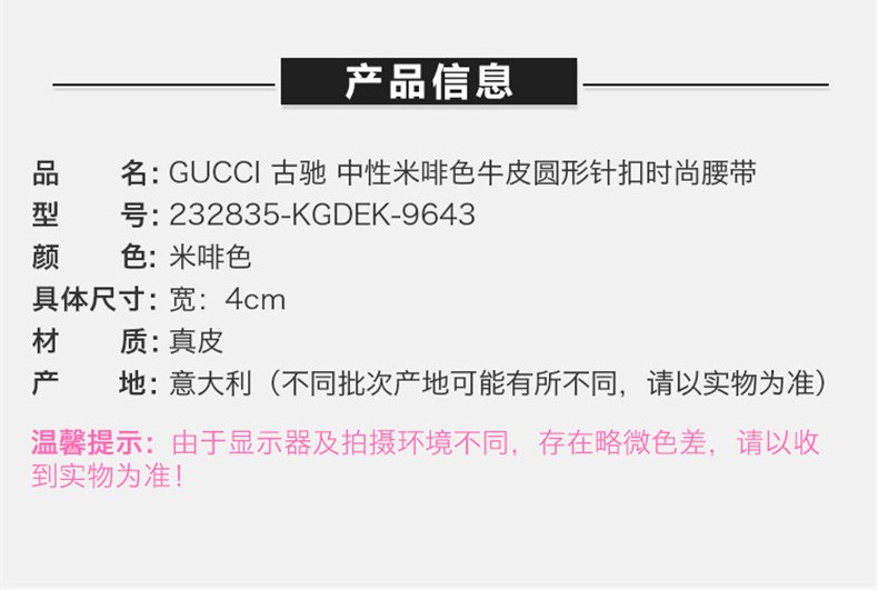 GUCCI/古驰 棕色PVC 男士腰带 232835-KGDEK-9643JPY带授权招加盟代理