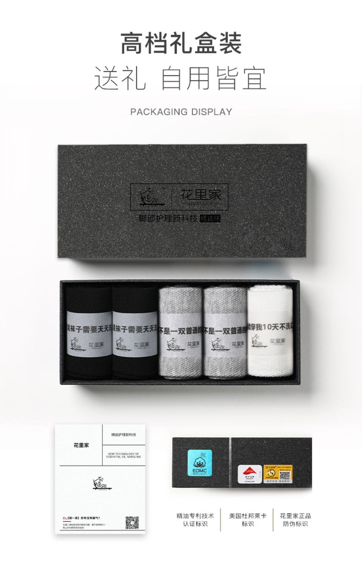 【限时减20】花里家黑科技防臭精油袜!抗菌吸汗男女可穿四季款中筒袜5双装/盒-杭州仓发