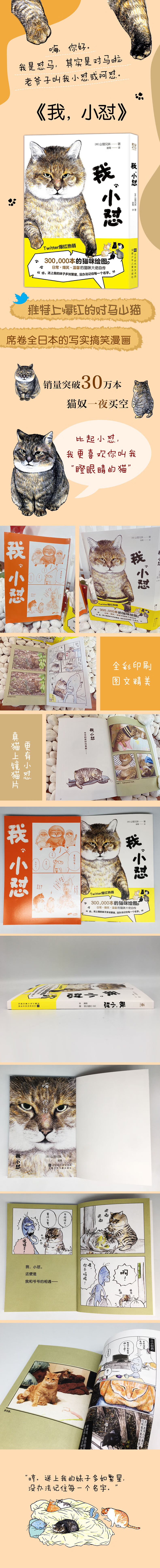 改编自真猫真事,饰以艺术塑造及奇特画风的加成,つしま(小怼/怼马)在推特名声大振起来。其中最传神的莫过于对猫咪的面部特征和个性语录入木三分的刻画,如闻其声,如见其猫。一书在手,足不出户即可开始撸猫。不过本书并不是纯粹无厘头的作品,除去大量的搞笑幽默剧情,也不乏猫视角下生离死别的展现,抛开人类立场,点到即止,引人深思。
