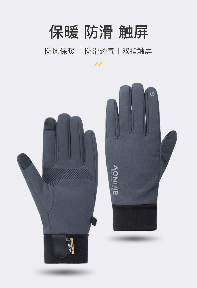 奥尼捷运动保暖手套男冬季户外徒步骑行防风加绒滑雪手套跑步手套M-58
