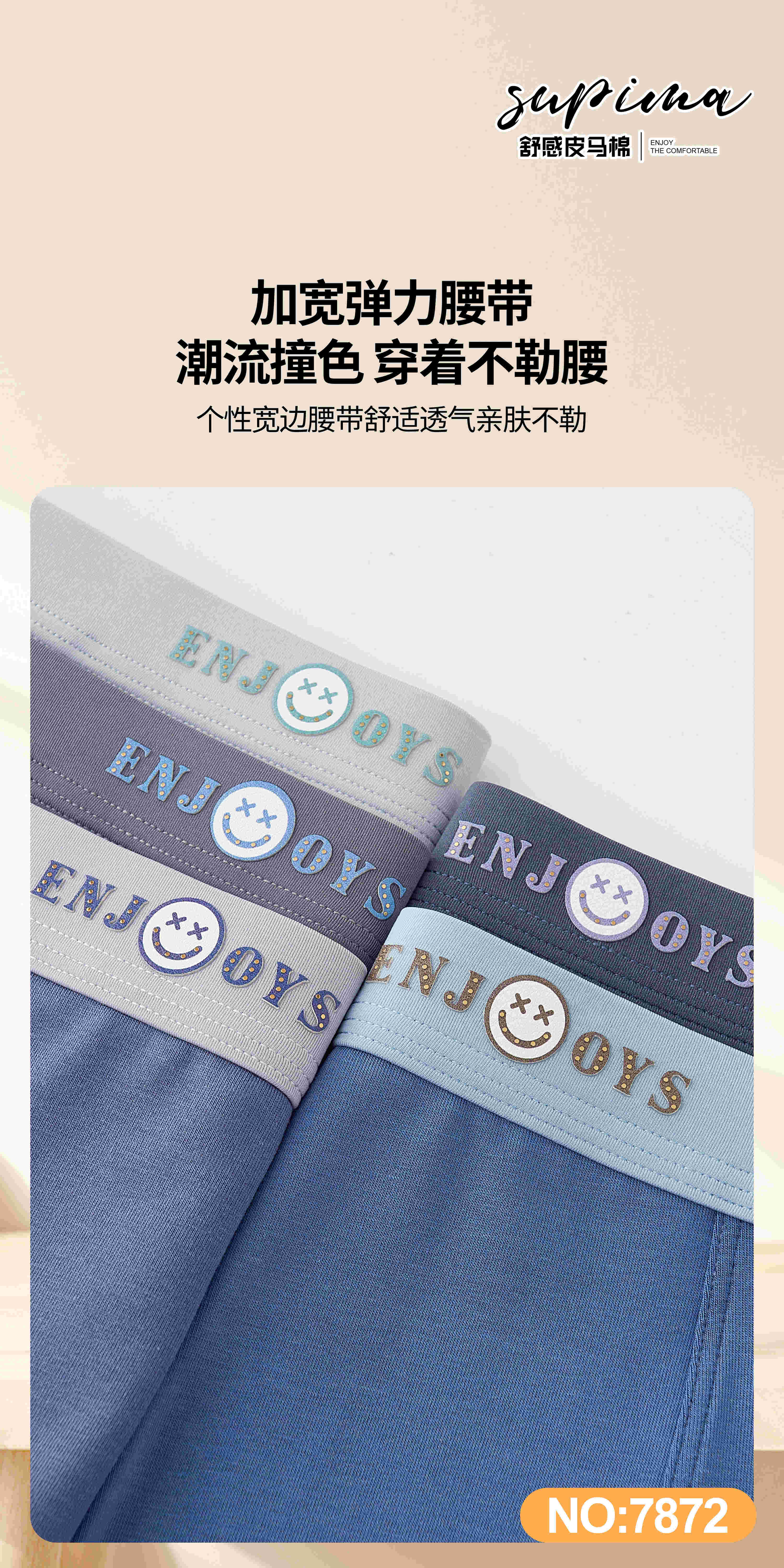 男士皮马棉10A桑蚕丝底裆撞色包头平角内裤四角裤7872