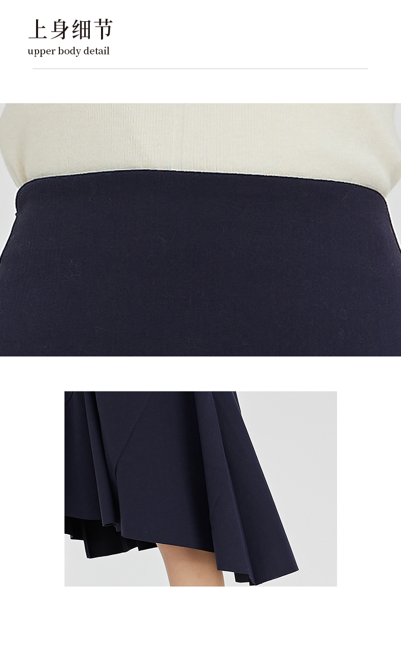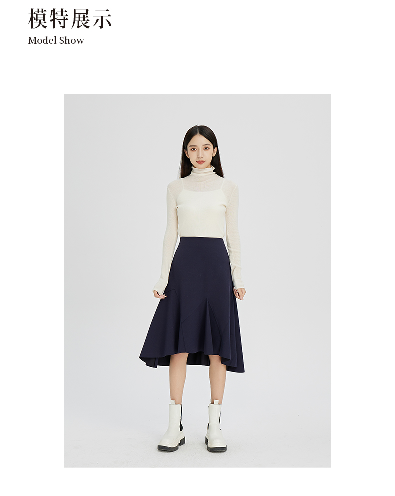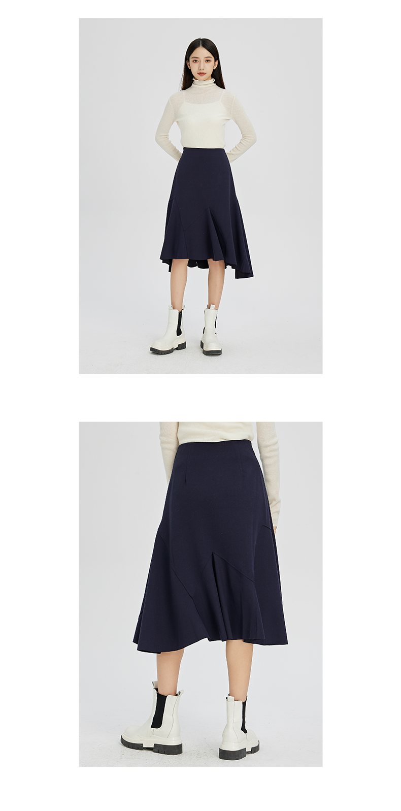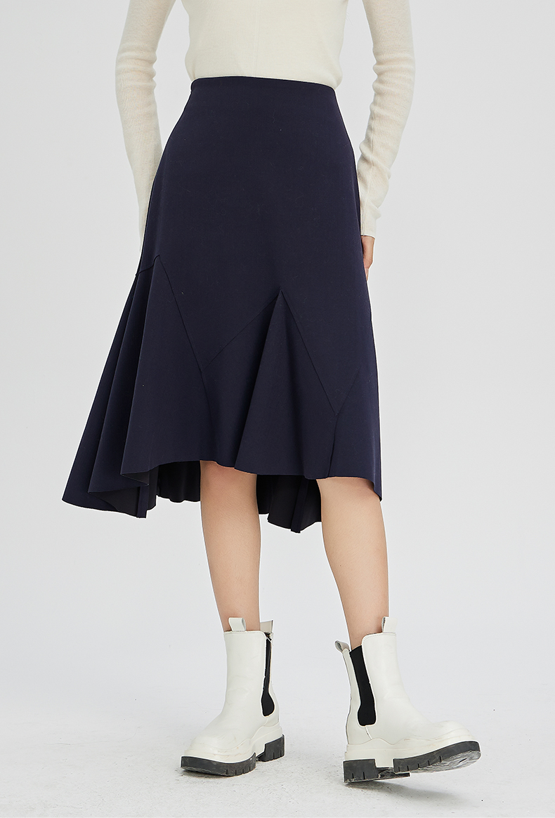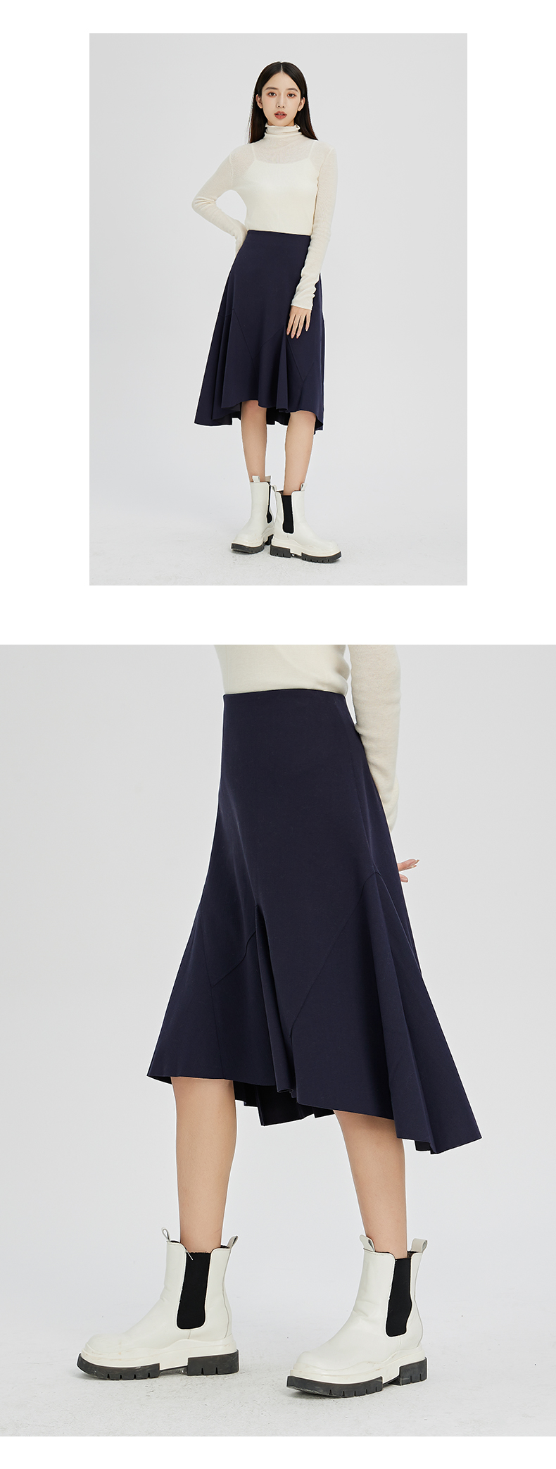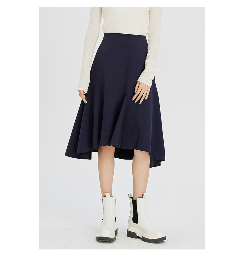 NUTS秋冬款复古气质深蓝色百搭高腰显瘦不规则长裙女241063302B