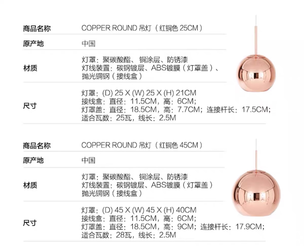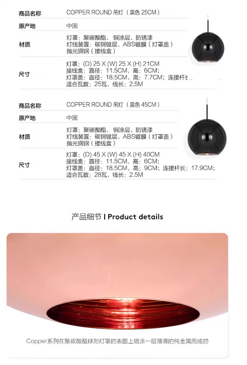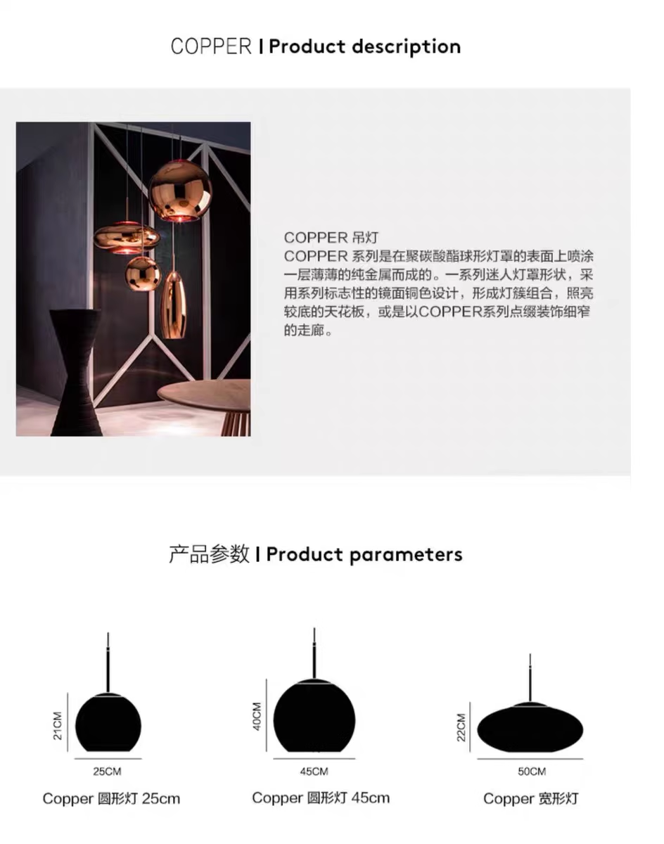 TomDixon COPPER英国进口吊灯后现代轻奢吊灯简约球形