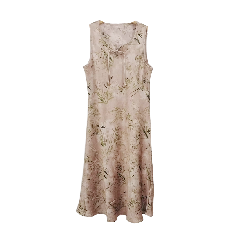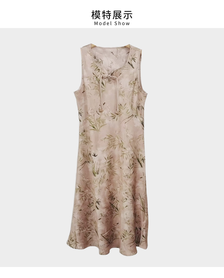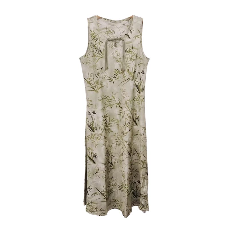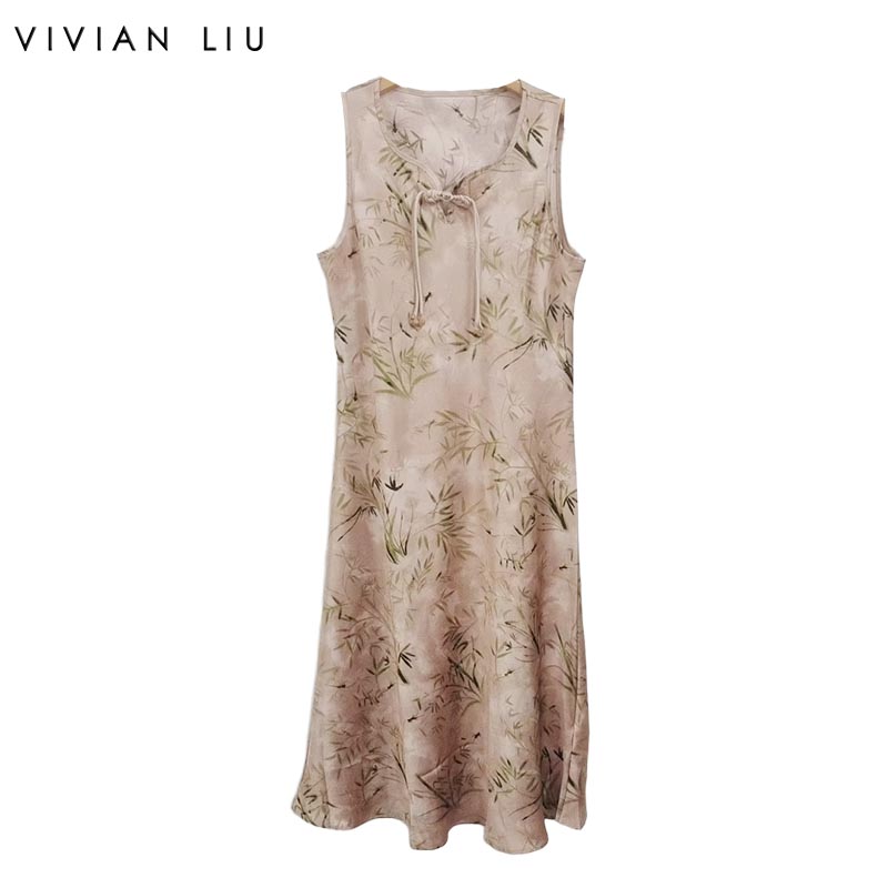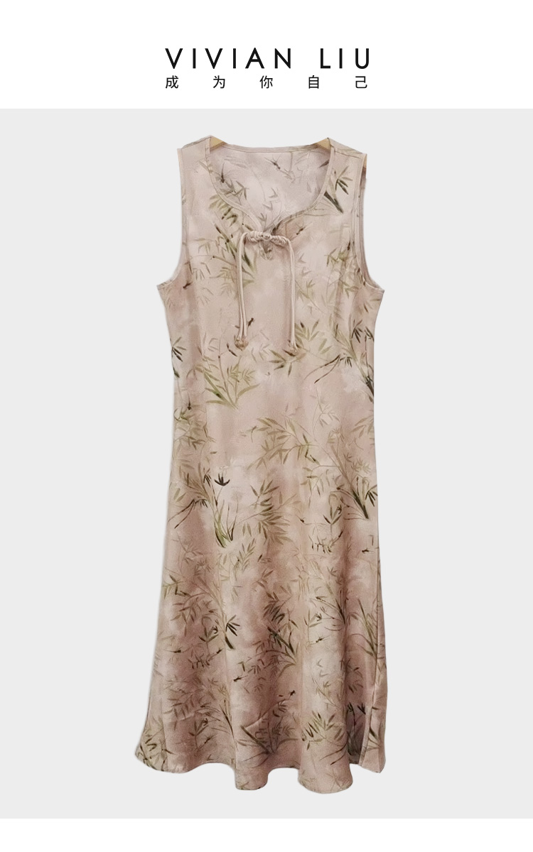 薇薇安刘A2534103 夏季女装新款圆领盘扣竹影印花无袖中式连衣裙