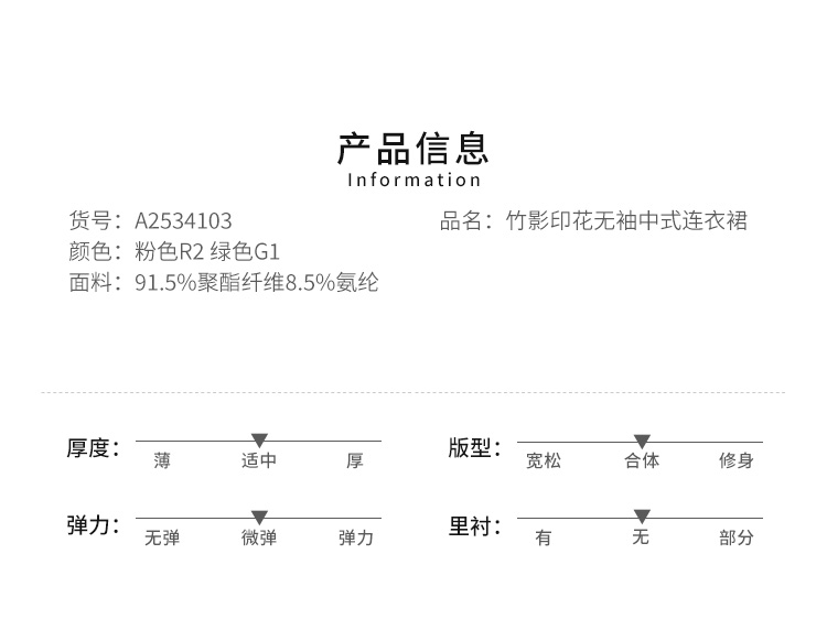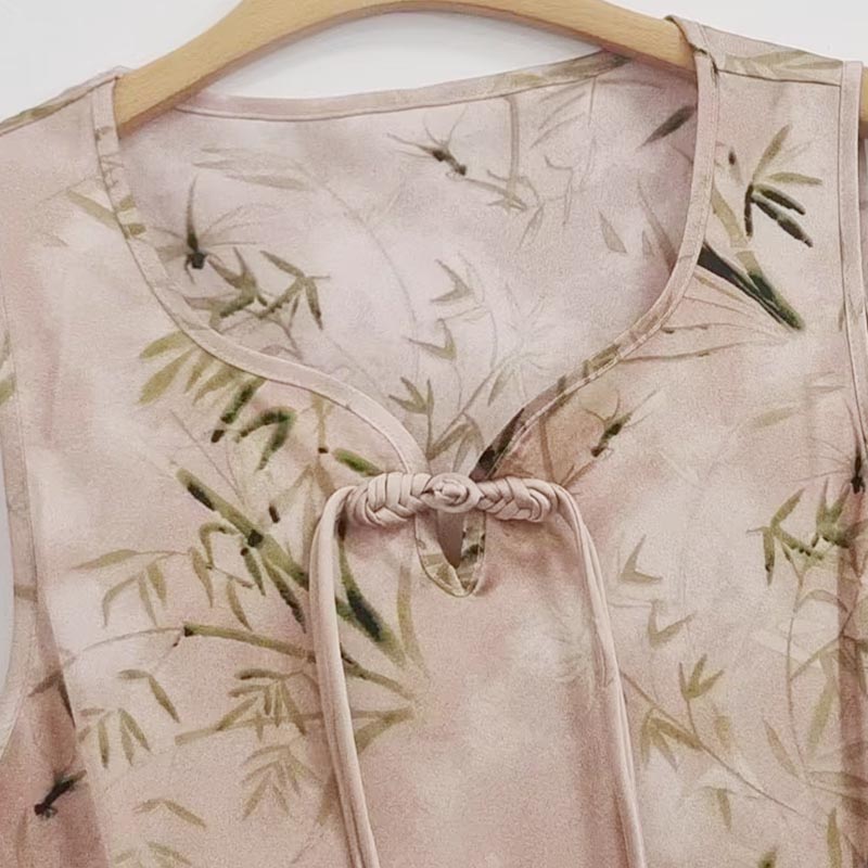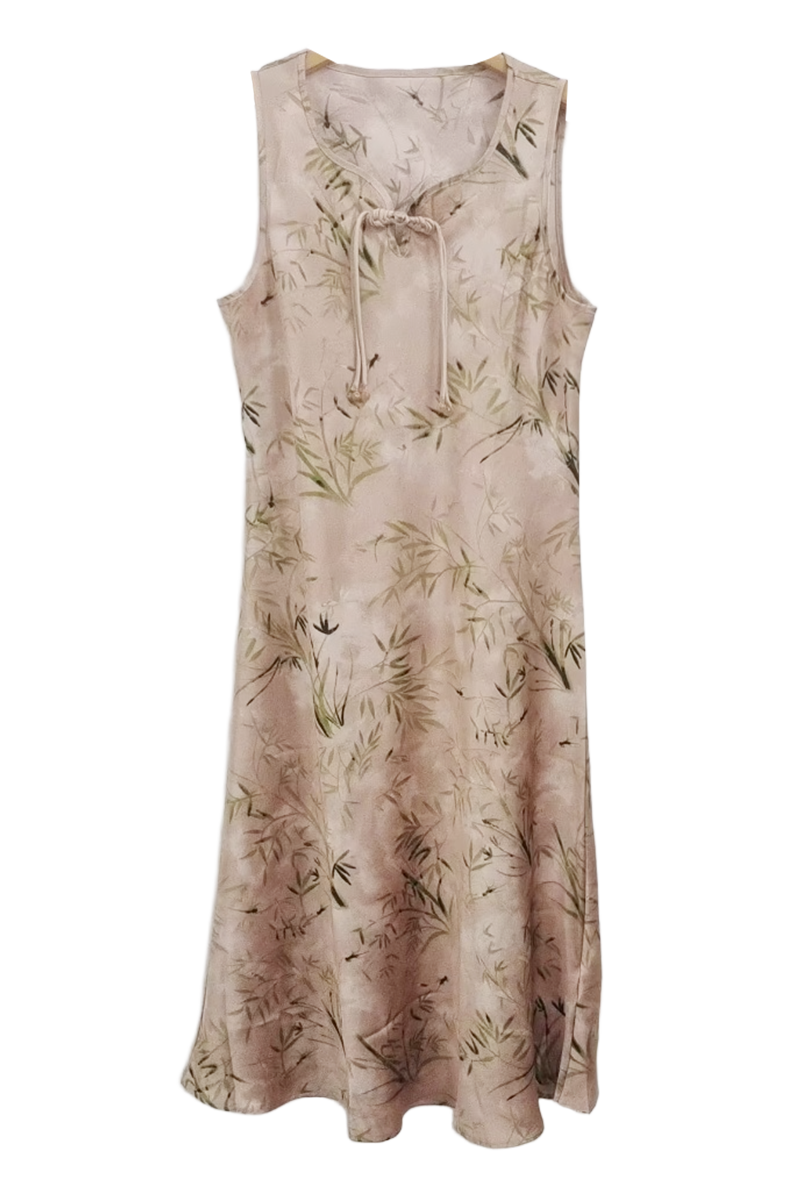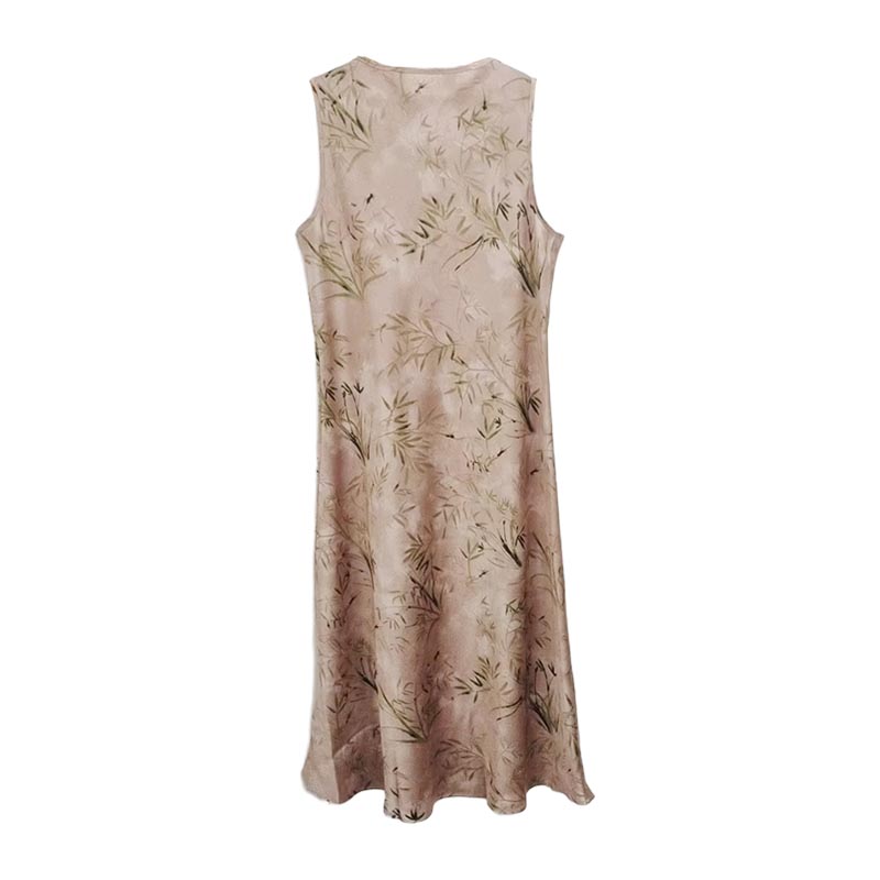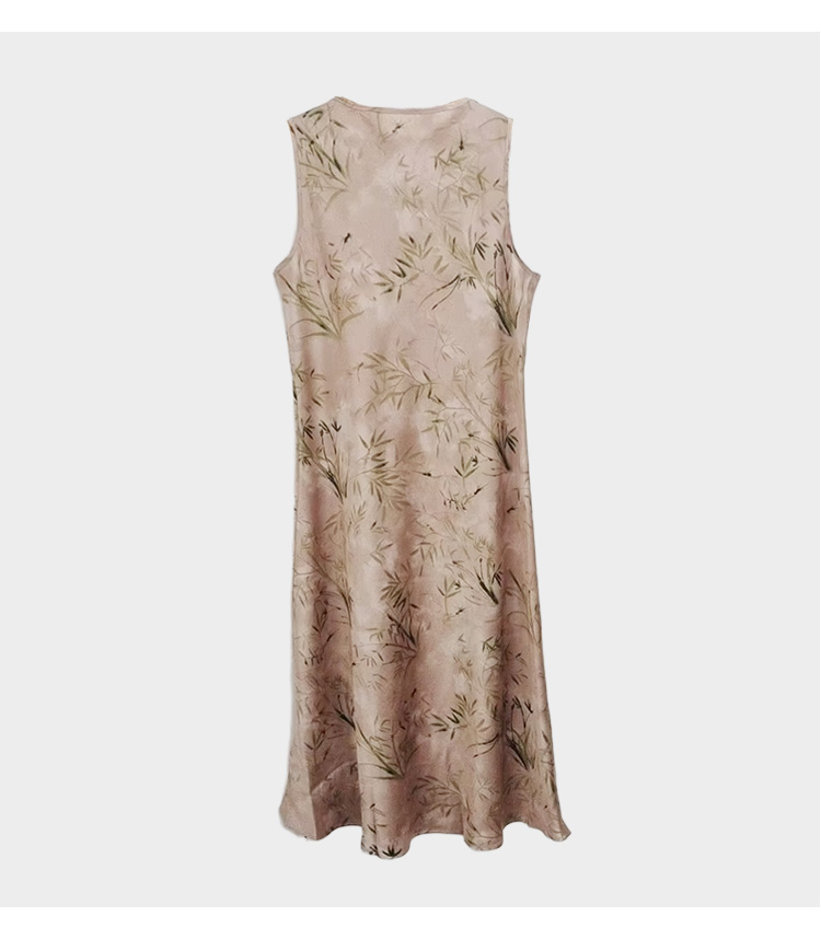 薇薇安刘A2534103 夏季女装新款圆领盘扣竹影印花无袖中式连衣裙