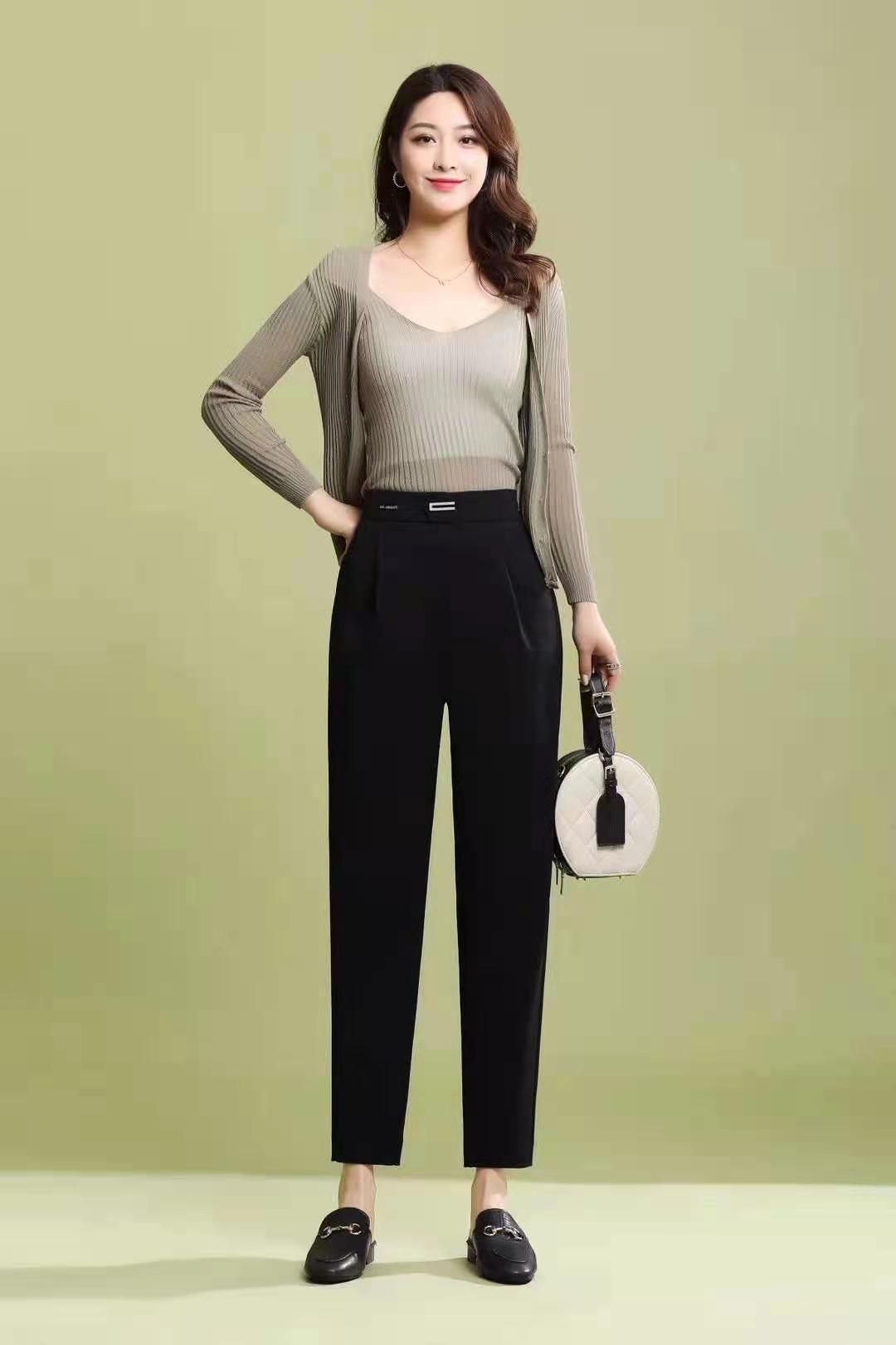 商品卖点:时尚哈伦裤面料舒适,简约大方,垂感成型,适合30-45岁时尚女性穿着。