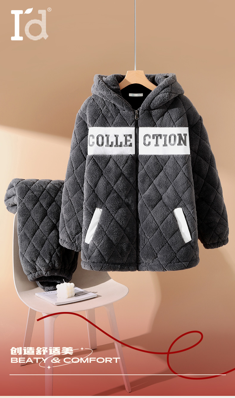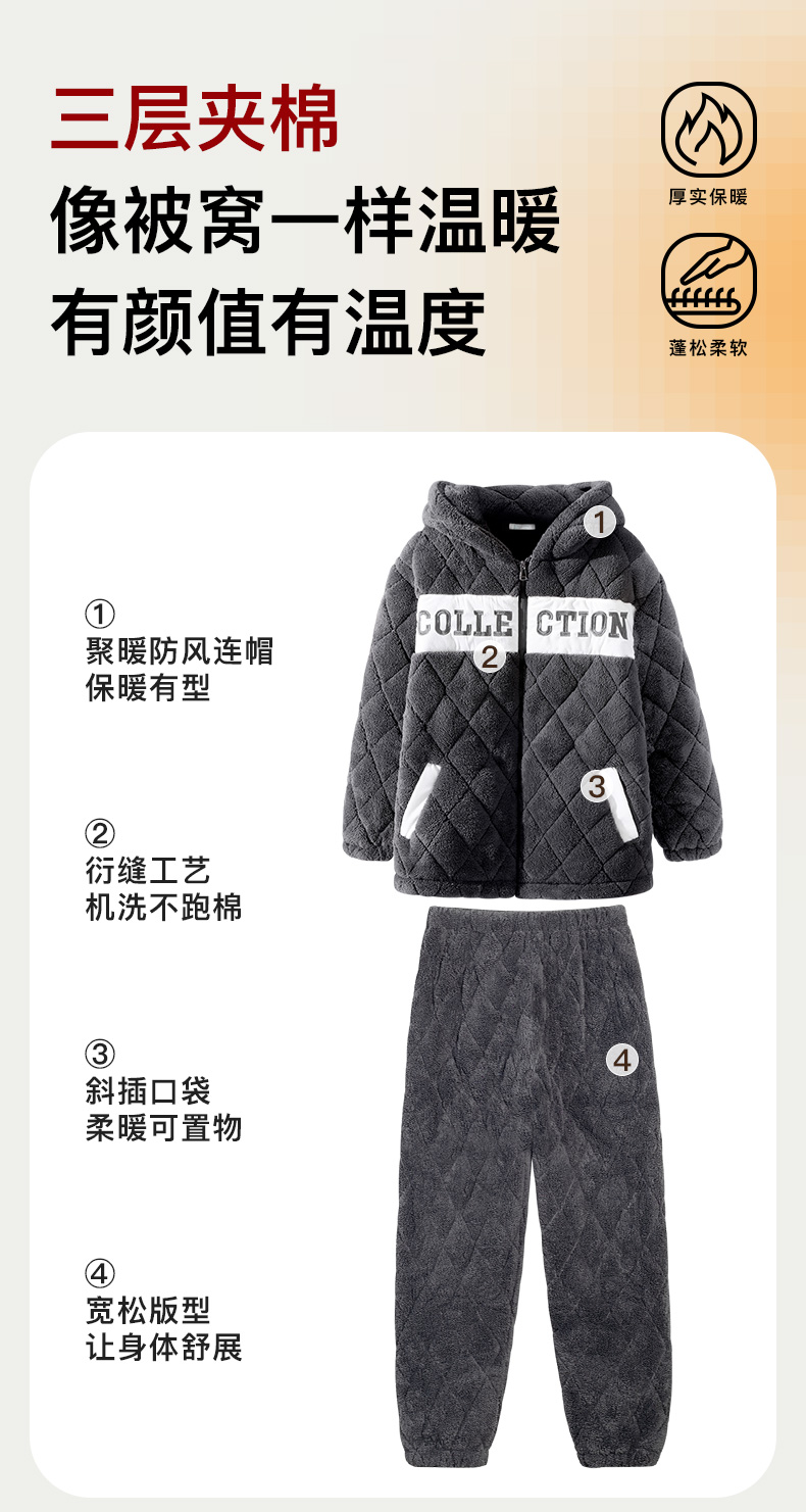 爱帝冬季三层夹棉家居服套装加厚保暖(男女款可选)