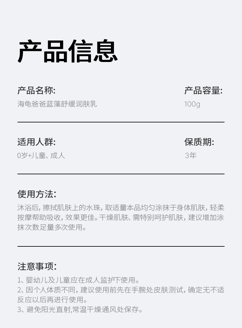 海龟爸爸积雪草洁颜泡泡80ml+积雪草精粹霜40g+蓝藻身体乳100g