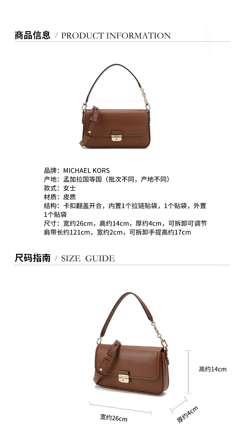 Michael Kors/迈克·科尔斯【22春夏新款】女士Bradshaw系列皮质手提单肩斜挎包腋下包小号 30S1G2BL1L