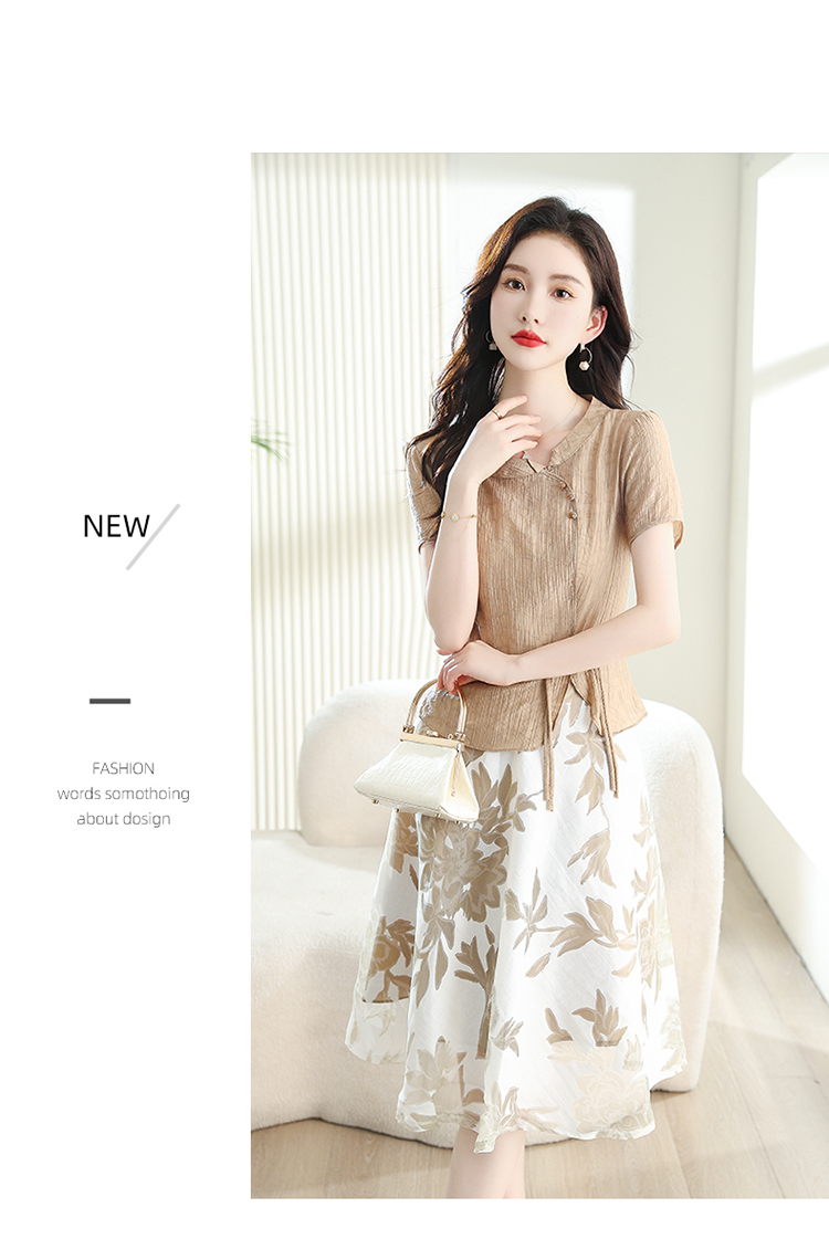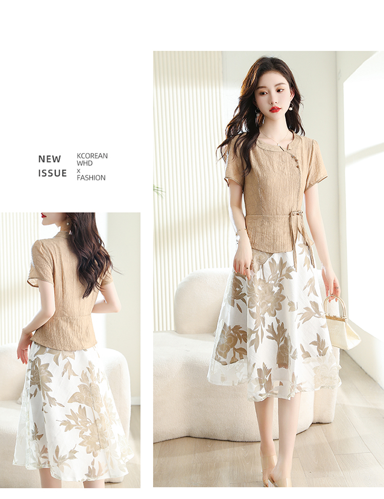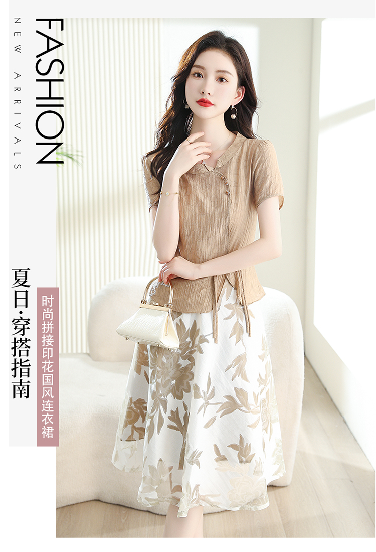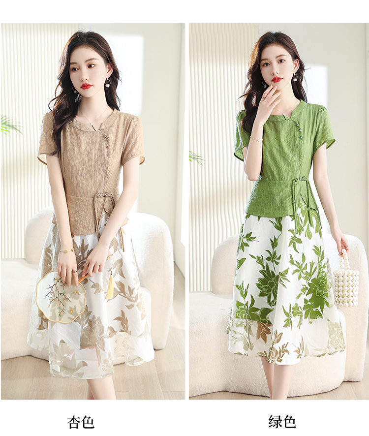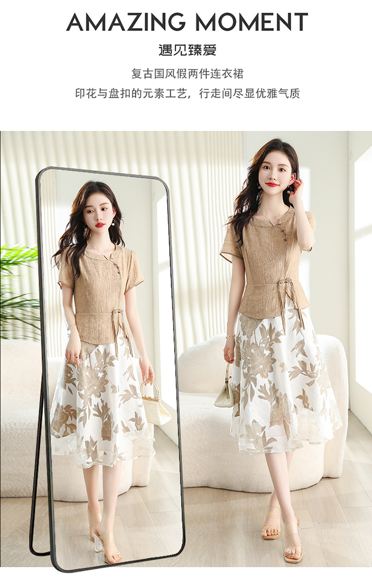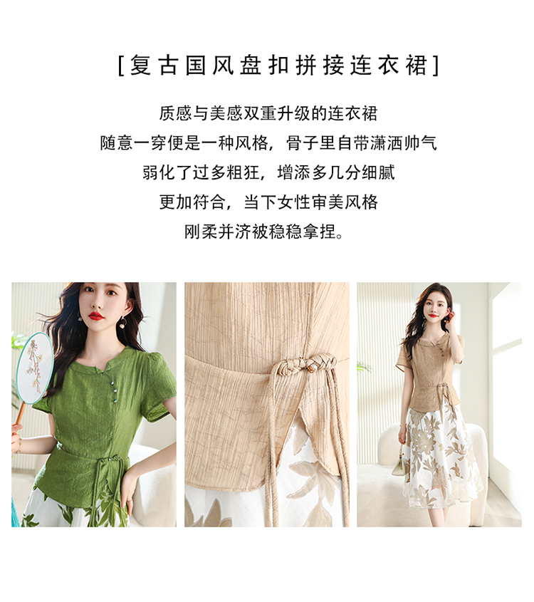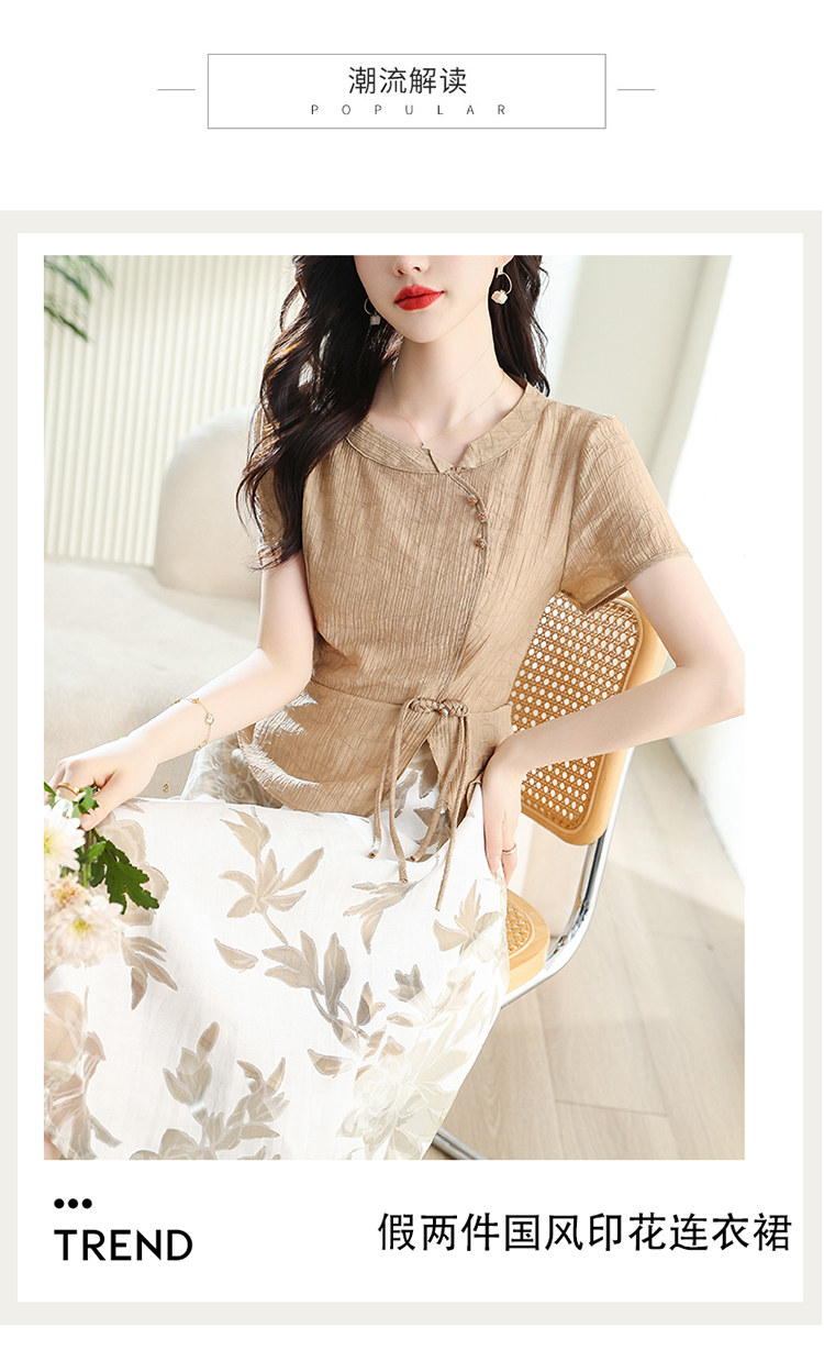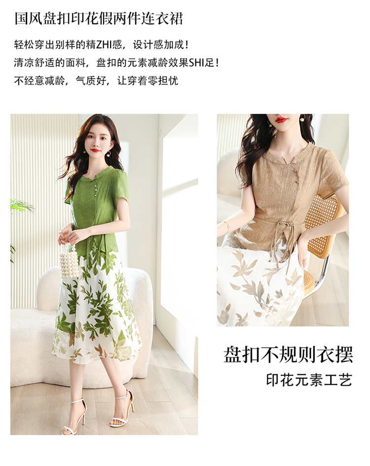 夏季新款,女装时尚新颖大气盘扣假两件套连衣裙HR-YYG82782-1