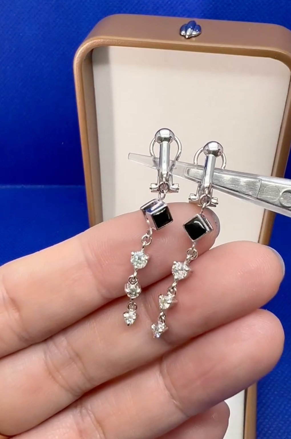 【日本溯源之旅】瘦脸神器 14k金玛瑙钻石耳夹 夏日耳线款熊猫配色 钻石0.44ct 立体几何造型 质感在线 经典弹力夹 3.9g(展会产品拍下后不支持7天无理由退换货)