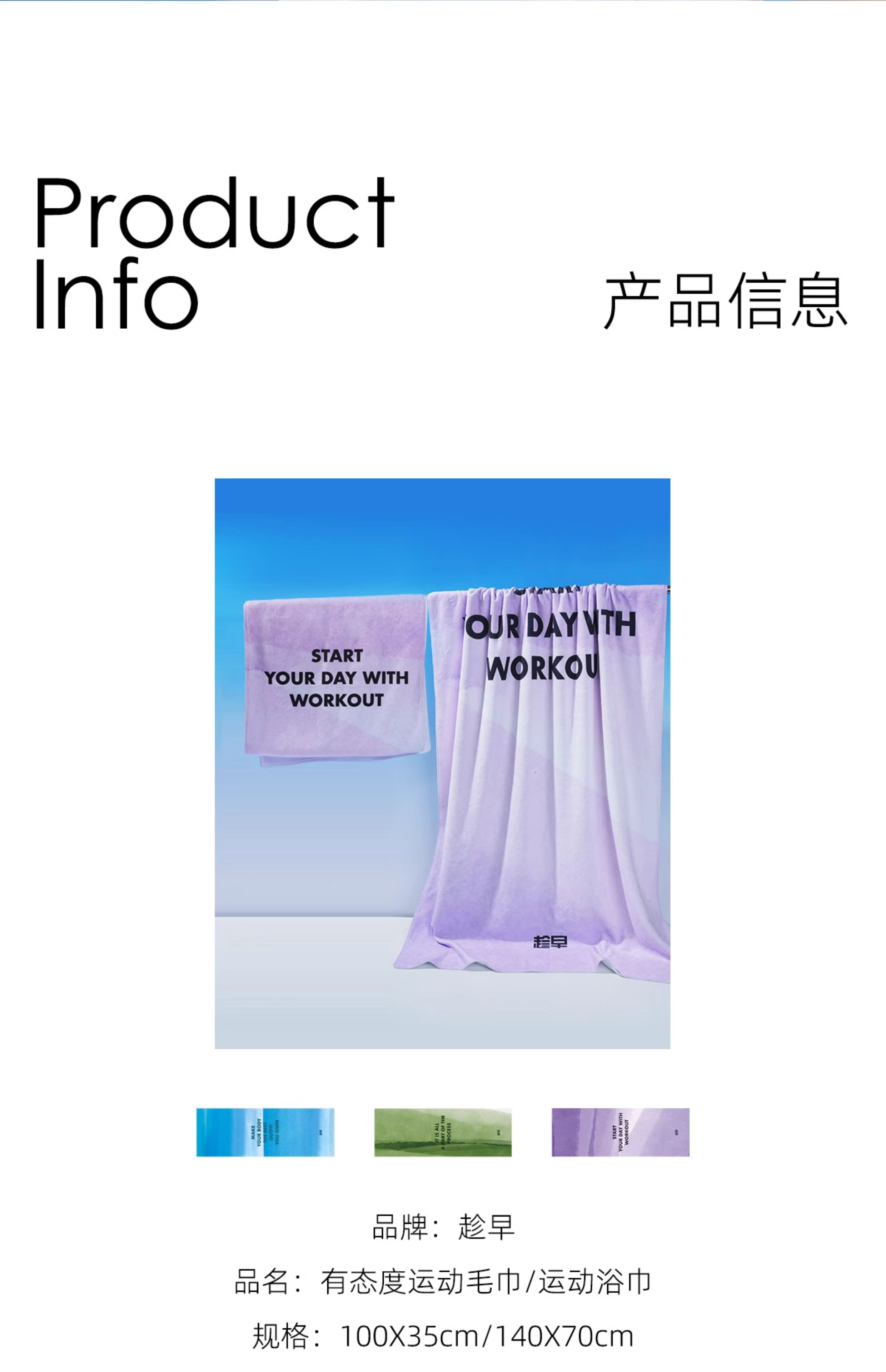 趁早有态度系列毛巾加大洗澡浴巾健身瑜伽运动毛巾擦汗吸汗巾