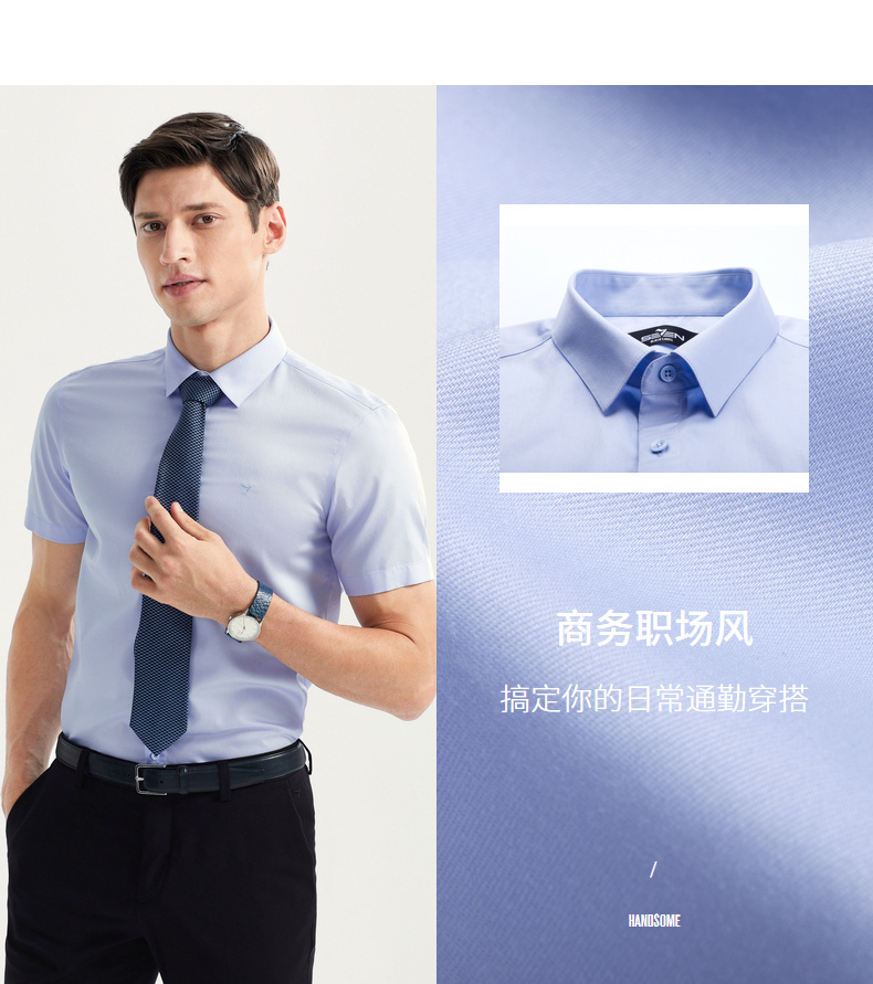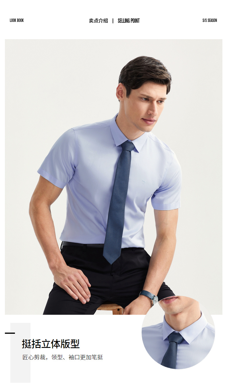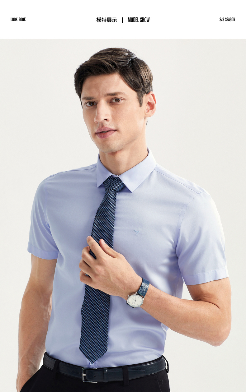 【特价】柒牌男装短袖衬衫商务休闲短袖衬衫男士时尚纯色 118A70300