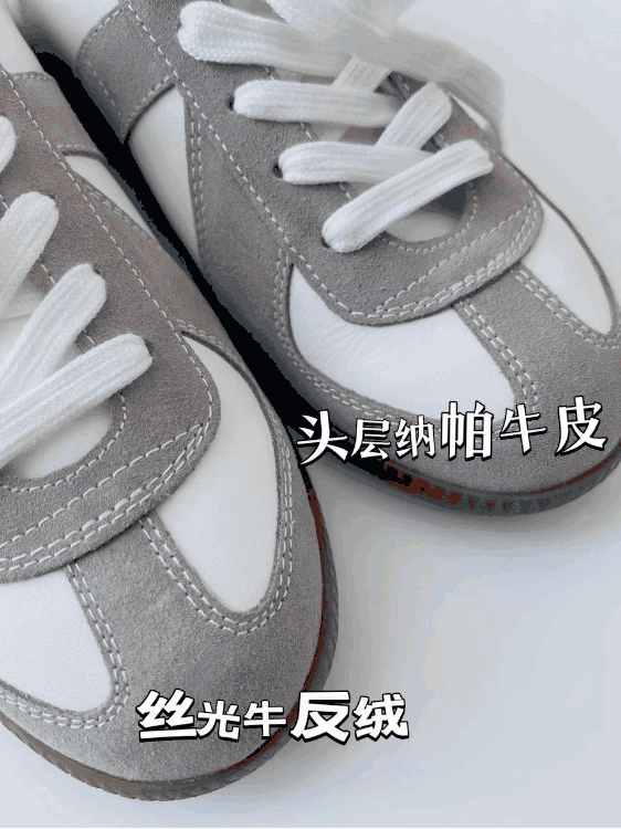 “灰色牛反绒+奶白色头层牛皮”一眼高级的