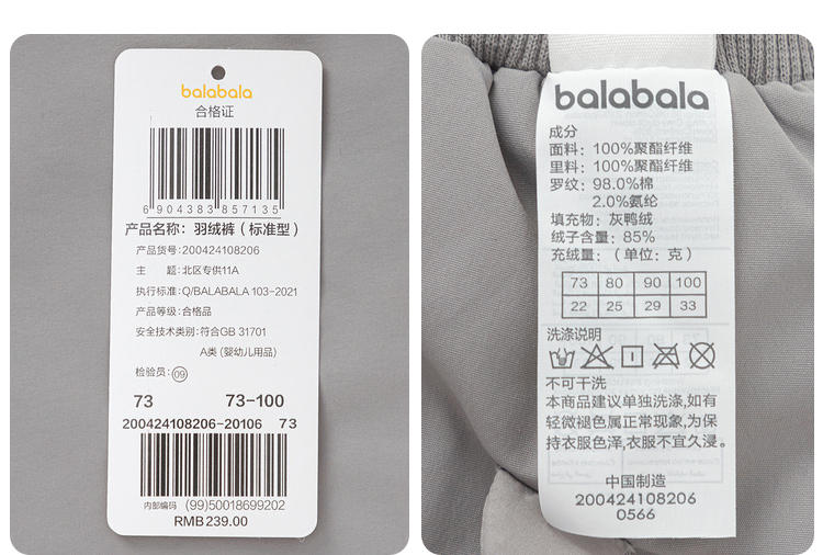 巴拉巴拉儿童羽绒裤男童冬季女童保暖裤加厚立体充棉小动物可爱萌