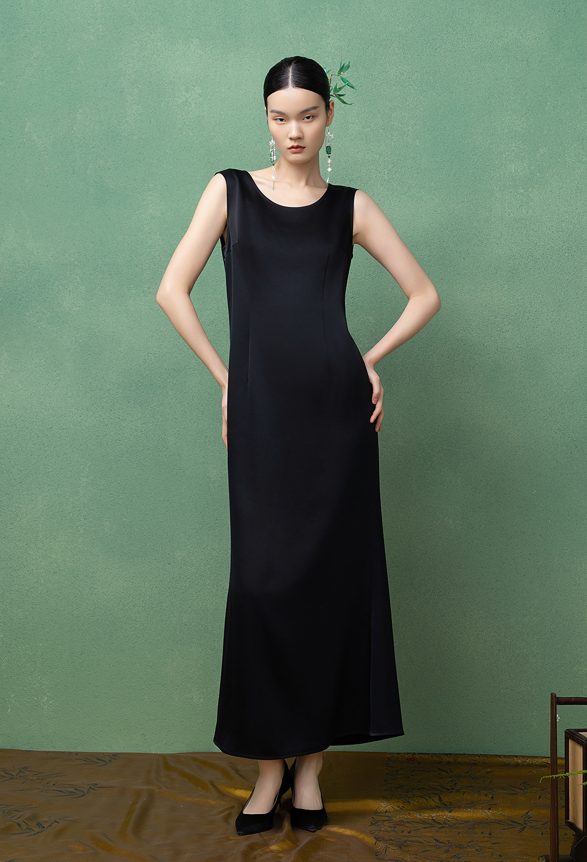 【林栖设计小店】优雅连衣裙复古法式气质修身显瘦2025春夏新品无袖长裙女1952116