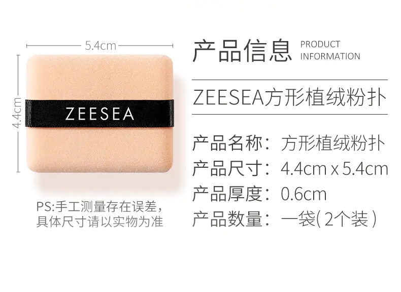 [粉扑]【到手价13.3元丨39.9元任选3件】ZEESEA滋色方形植绒粉扑4只-埃及蜜粉饼原装粉扑(任选3件,拍下立减)