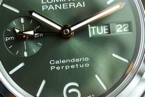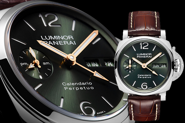 镜面材质 | 蓝宝石水晶玻璃 | 表盘 | Platinumtech™材质材质表圈 绿色太阳放射饰纹,附夜光阿拉伯数字及小时标示。星期显示,3点钟位置设日期显示,9点钟位置设小秒盘和24小时显示。 时、分、小秒针、日期、星期、月份、年份、闰年、GMT、动力储存显示、万年历显示、秒针归零 透底 |