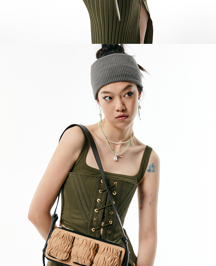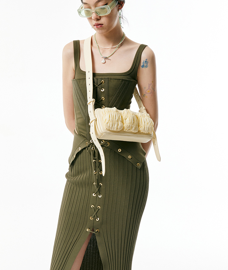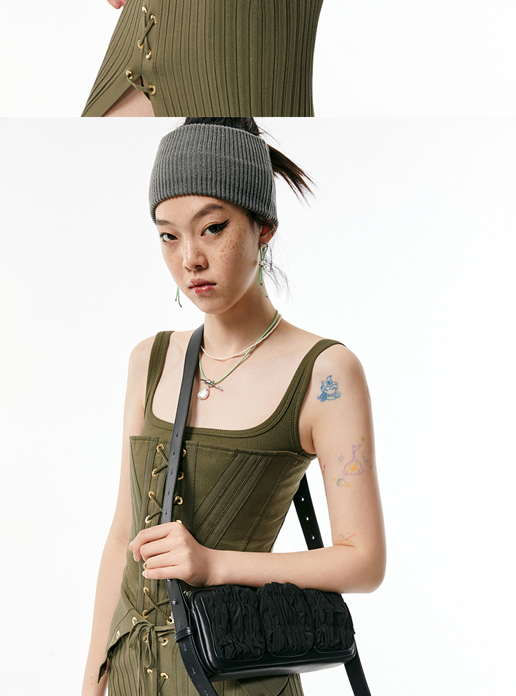 [断码]lost in echo 原创设计师抽褶斜挎手机包法棍腋下包