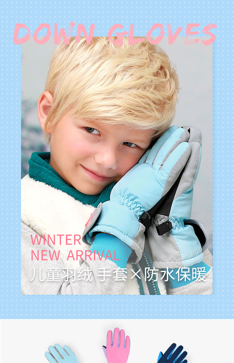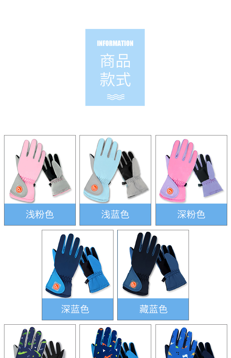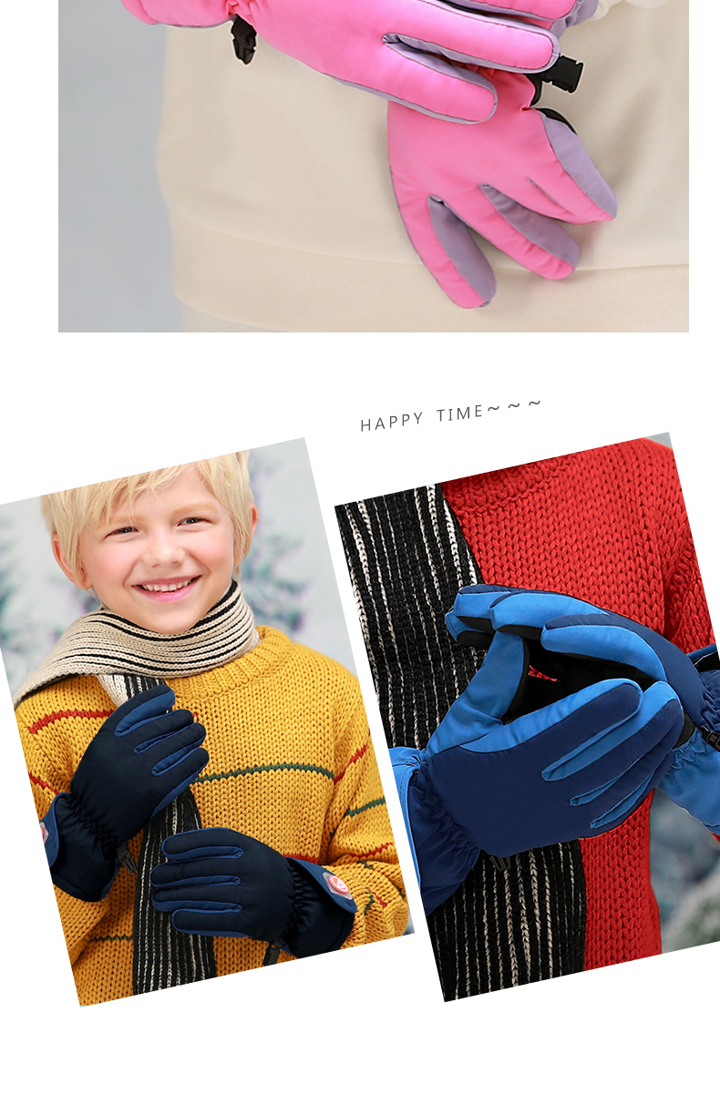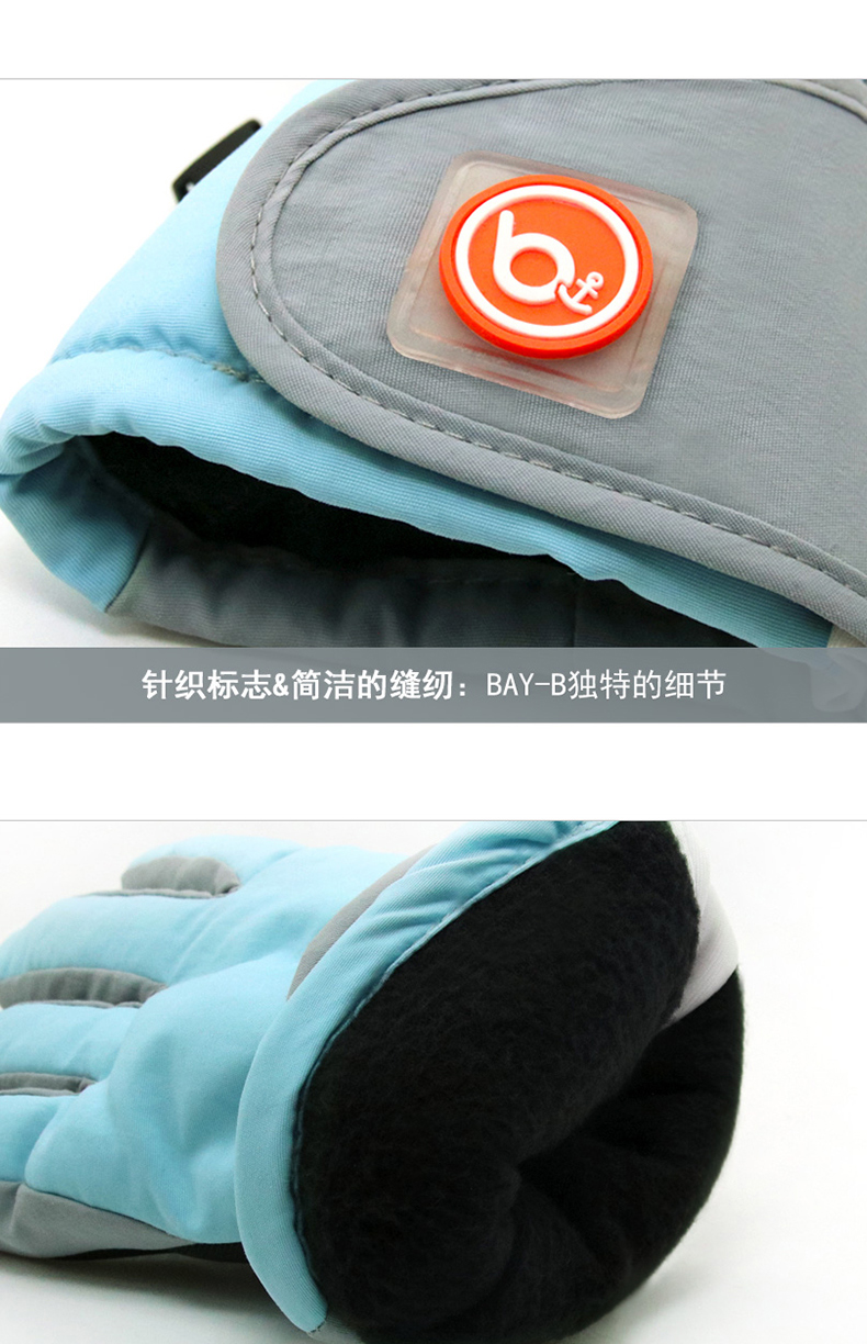 bayb儿童手套男童5-12岁 冬季保暖加绒加厚户外滑雪女童防水五指套