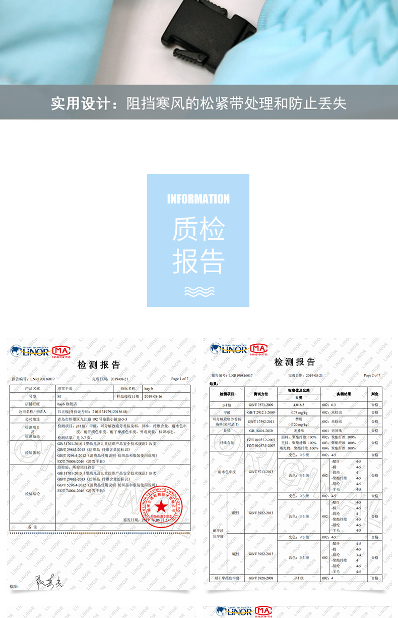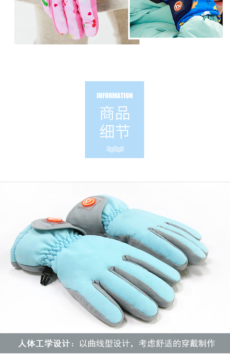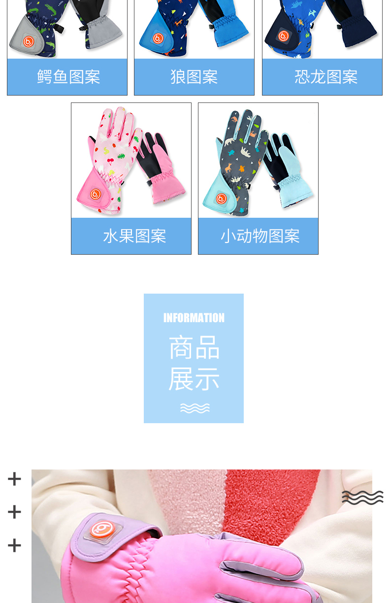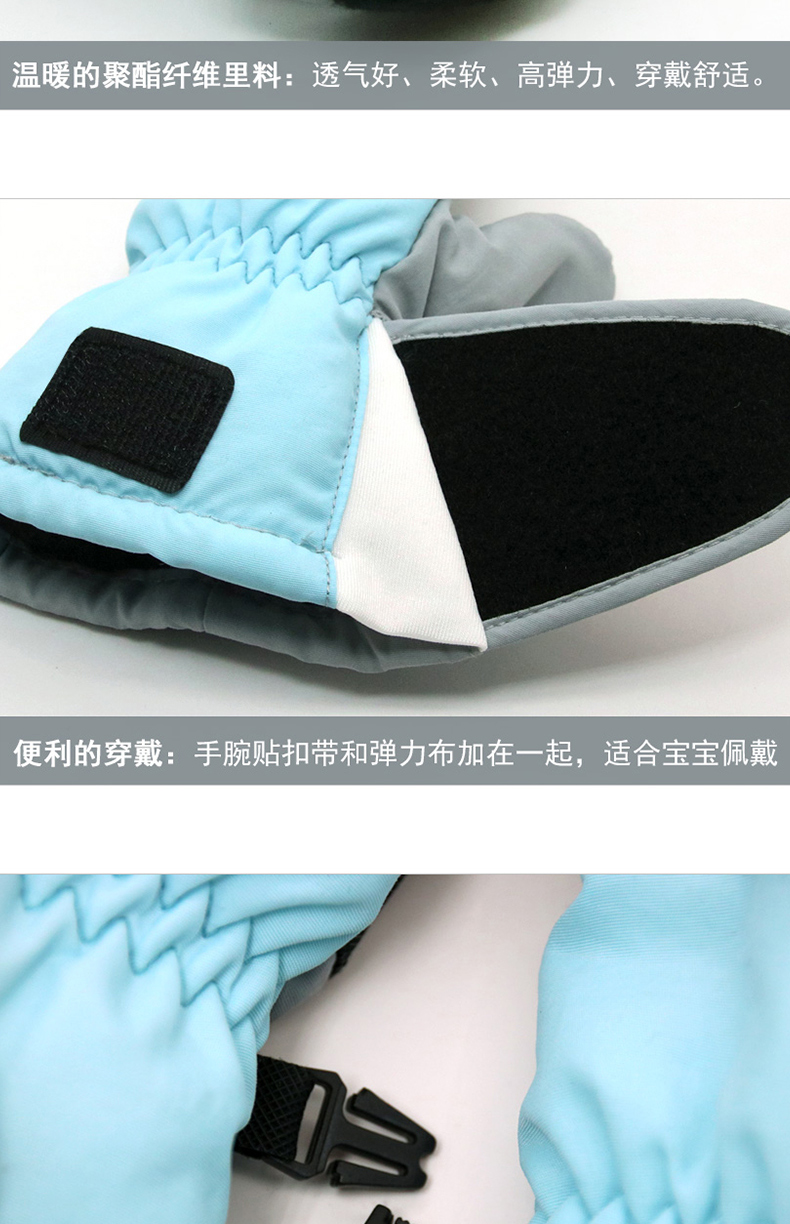 bayb儿童手套男童5-12岁 冬季保暖加绒加厚户外滑雪女童防水五指套