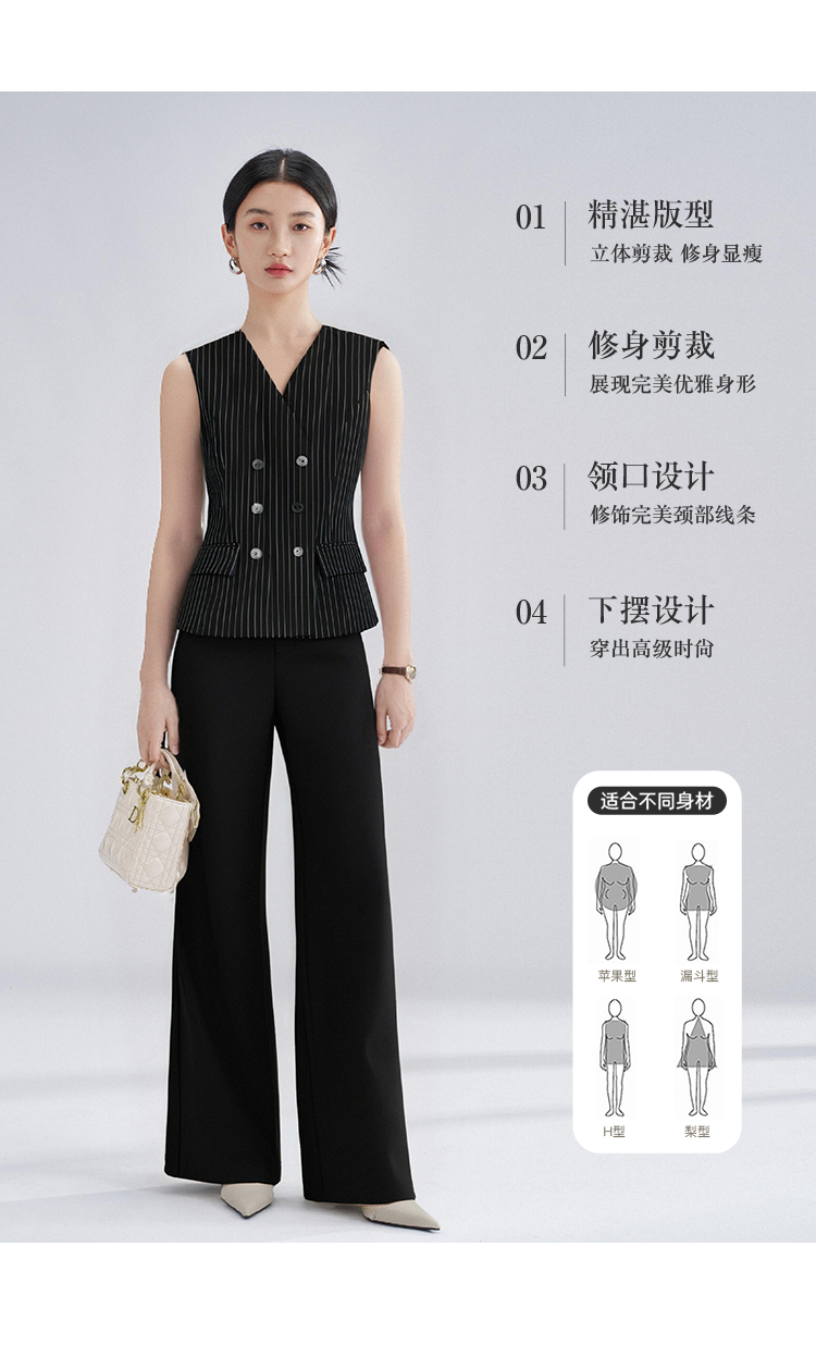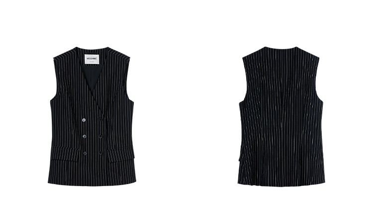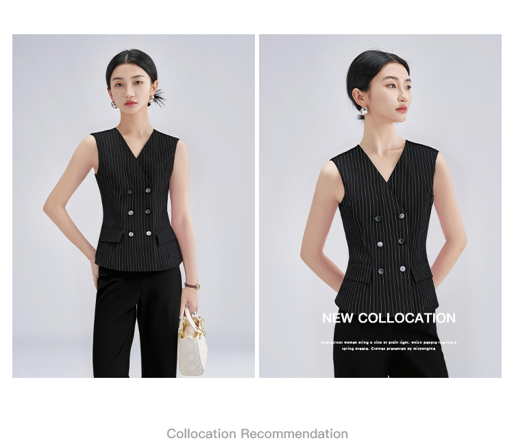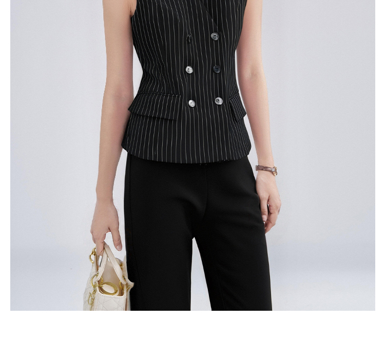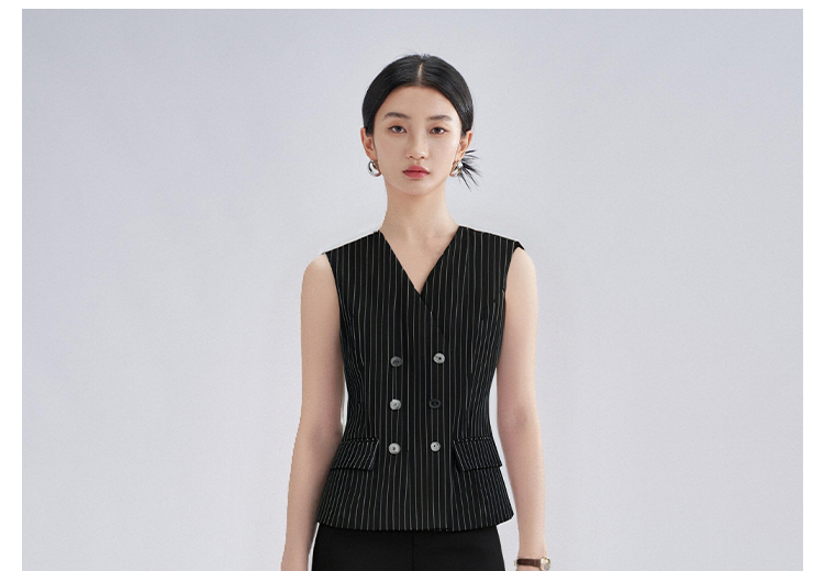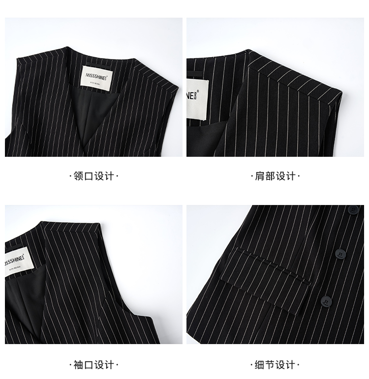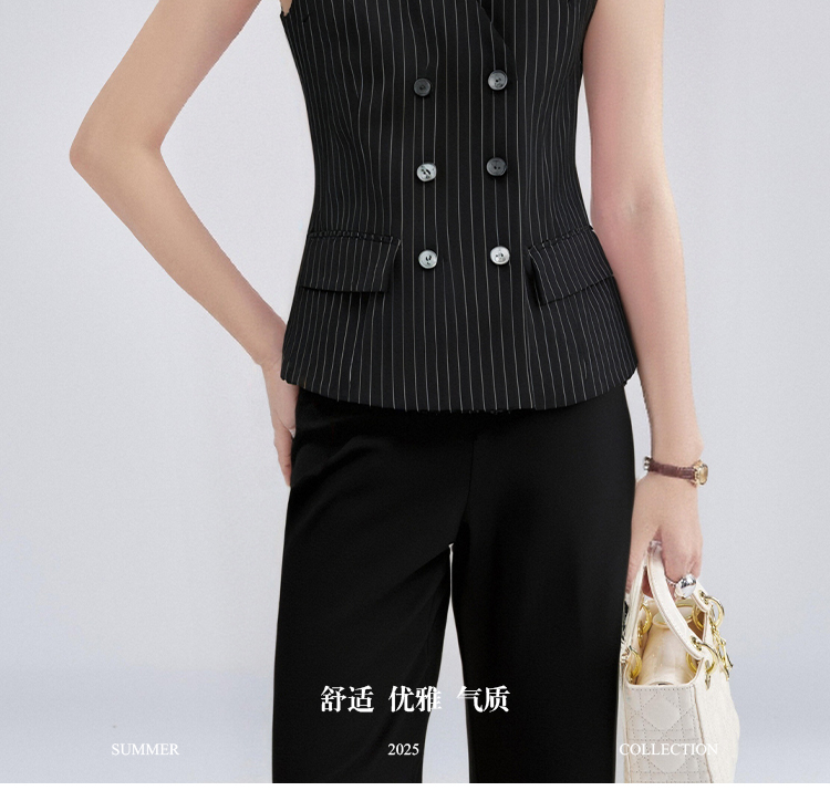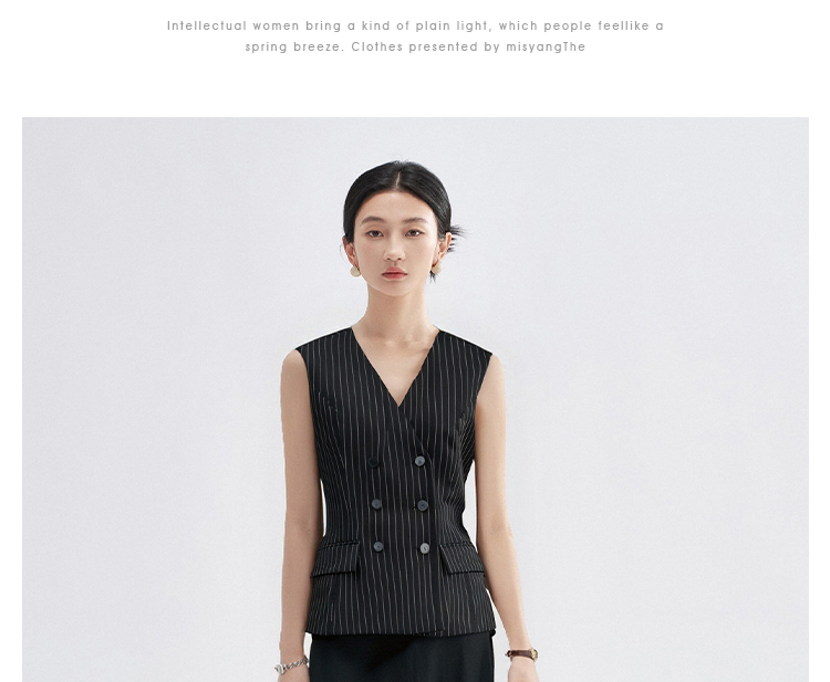 米思阳2026春季新款通勤风OL条纹马夹短外套双排扣修身马甲女4378