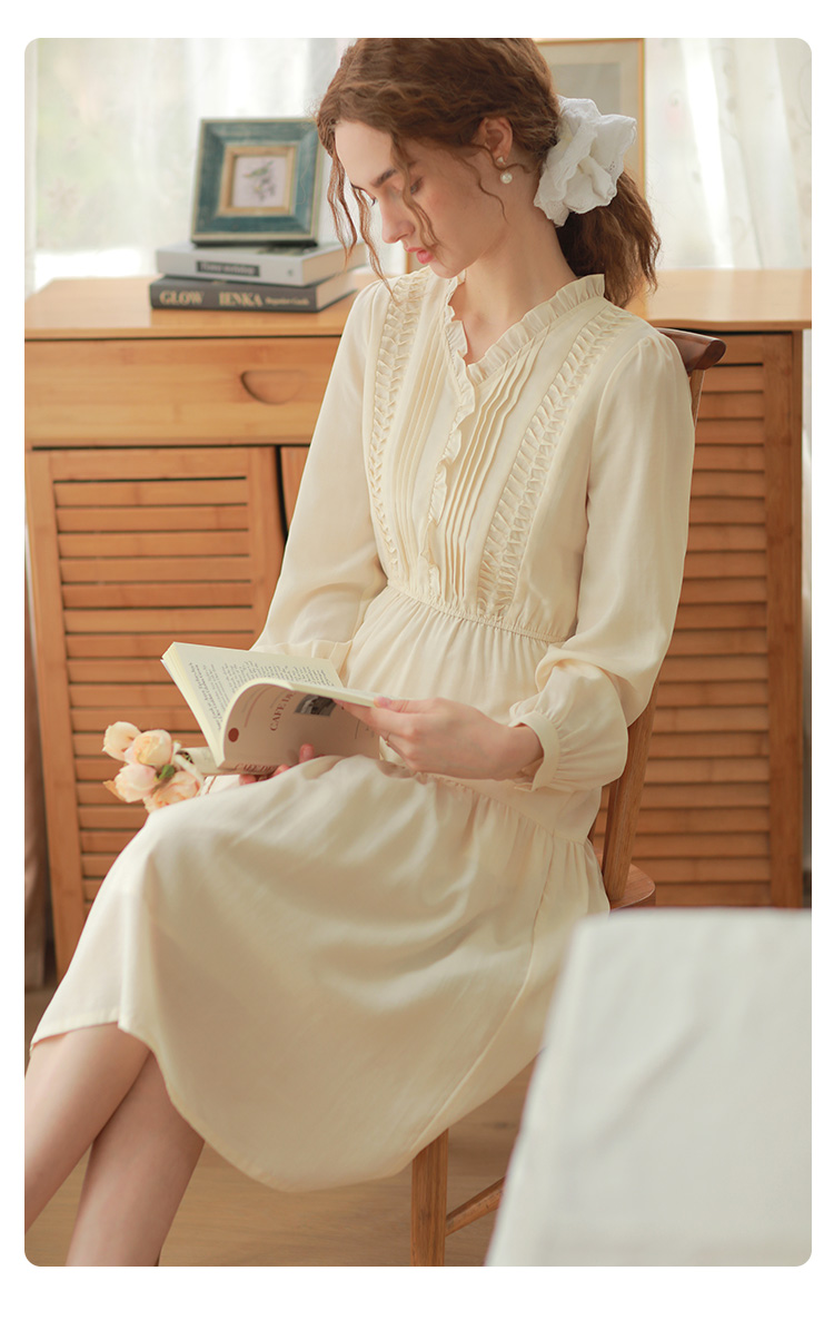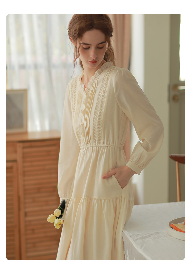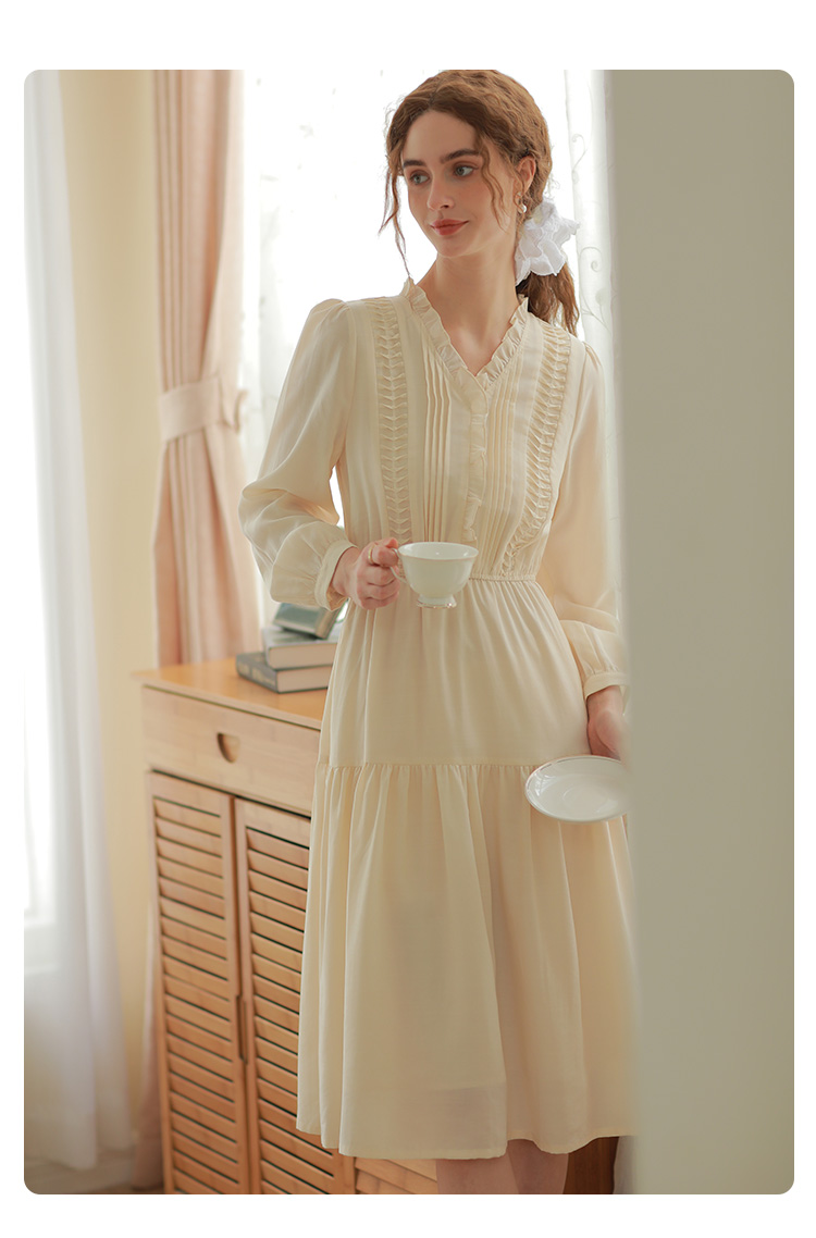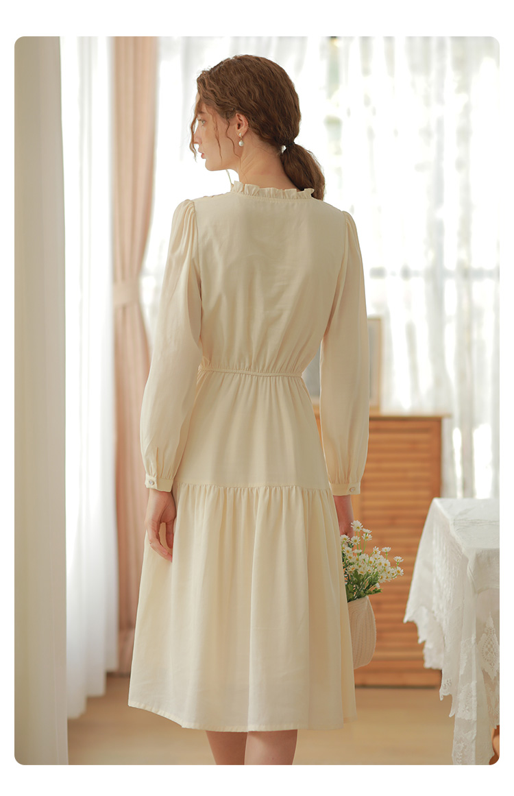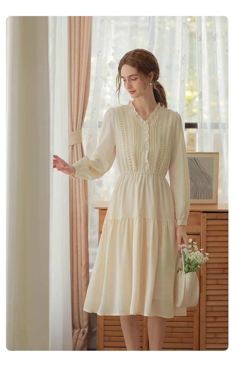 低饱和的奶油杏色,干净清爽 显得整个人温温柔柔的 穿上更有种美不胜收的轻盈美 |