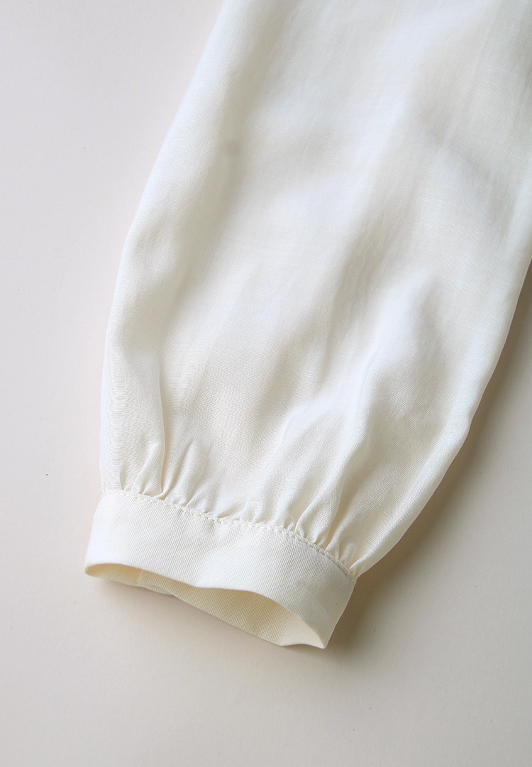 袖顶微褶设计比普通袖型更耐看 既修饰头肩比例,又遮挡手臂拜拜肉 宽边系扣的袖口设计,更显利落 |