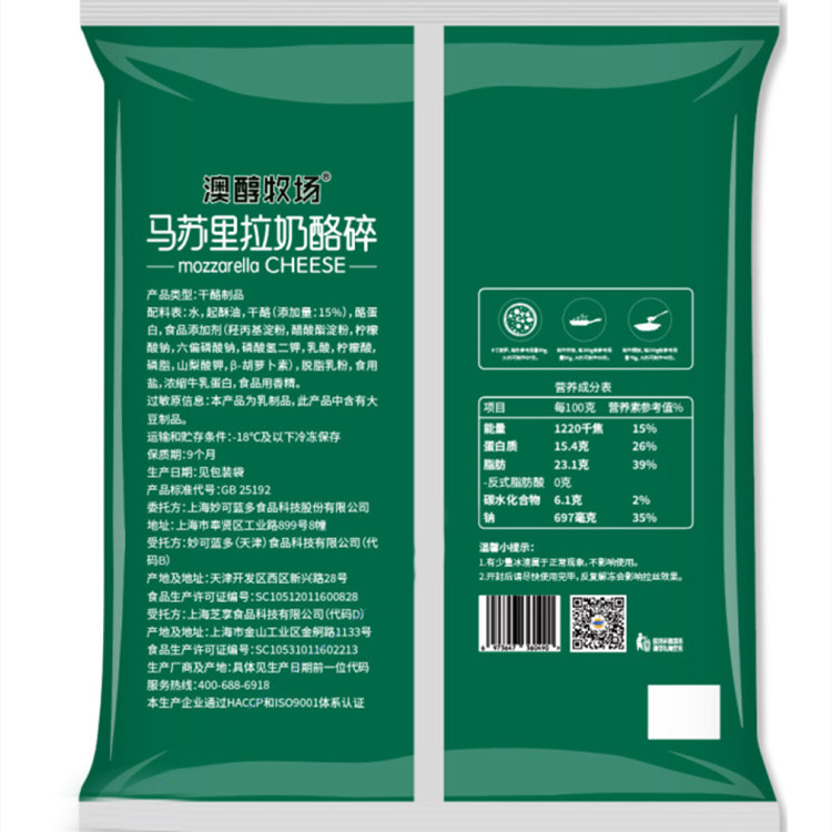 3kg 澳醇牧场 马苏里拉奶酪碎 芝士碎 披萨焗饭拉丝芝士 商用冷冻