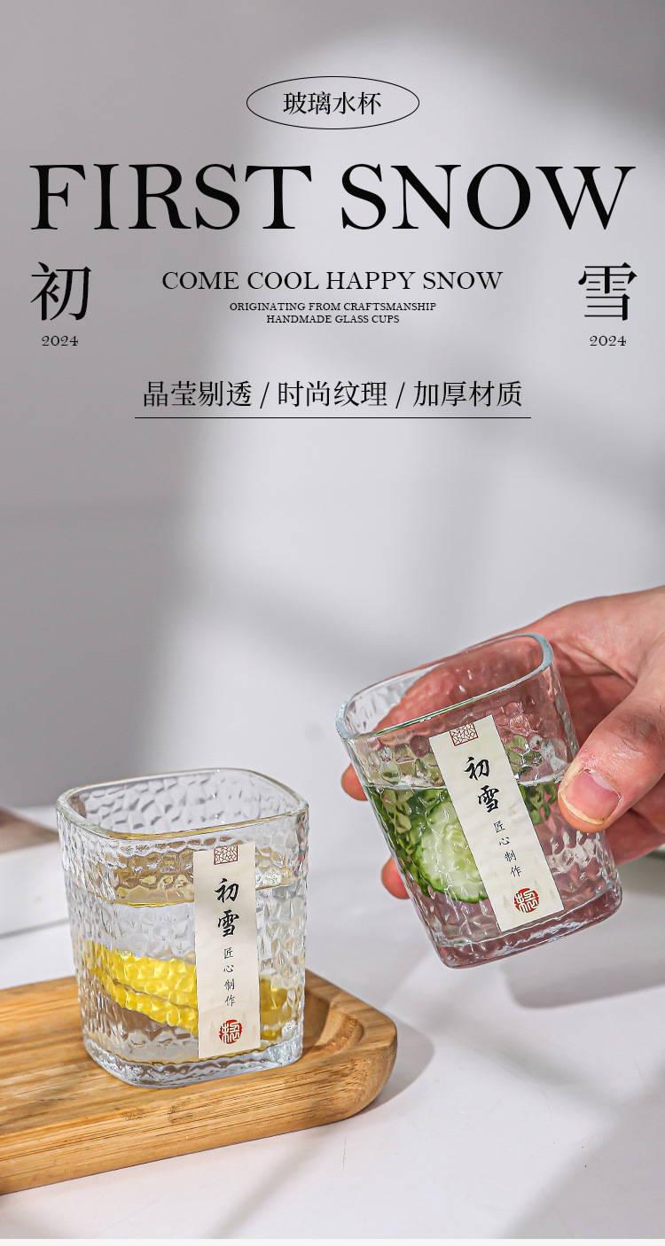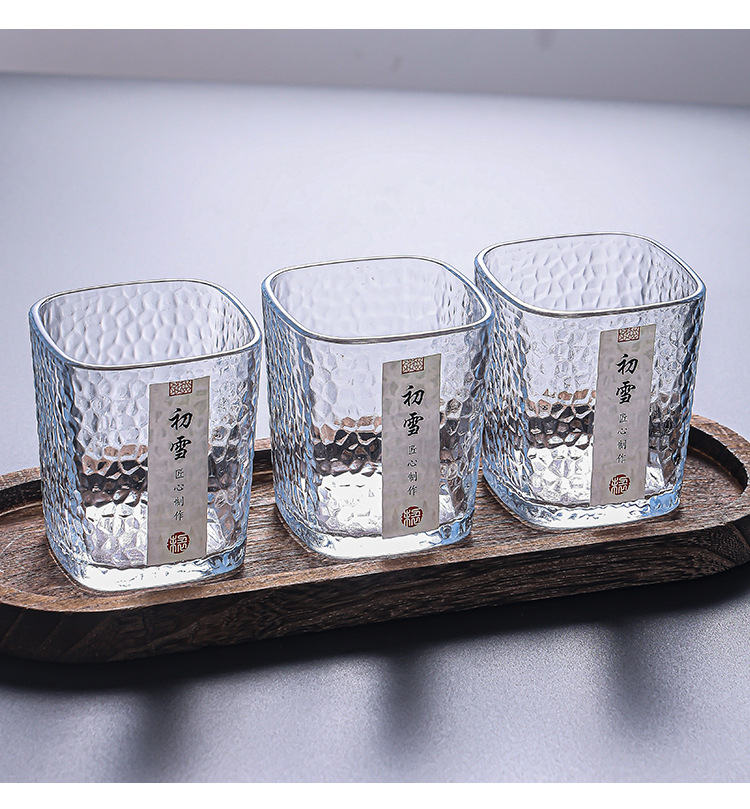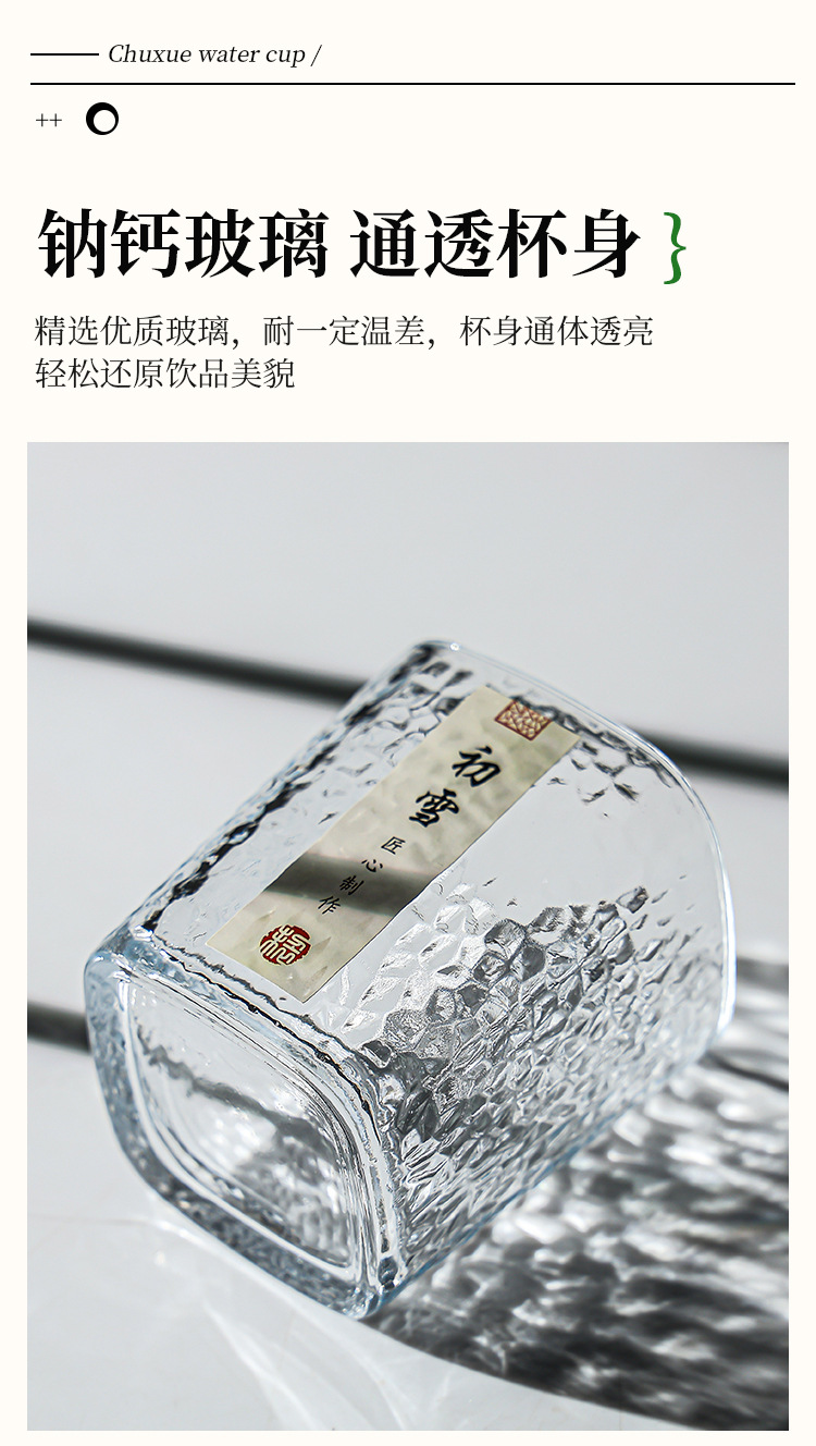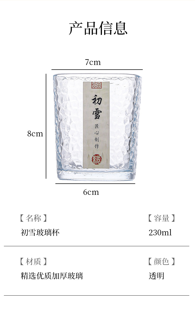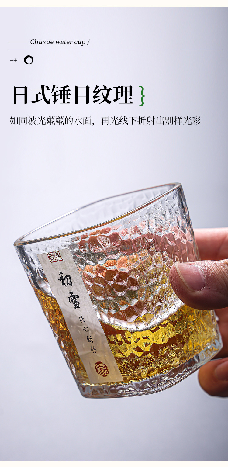 「19.9到手4只!初雪锤纹杯」初雪锤纹玻璃小茶杯 现代简约加厚玻璃杯耐热品茗杯玻璃水杯餐饮用具