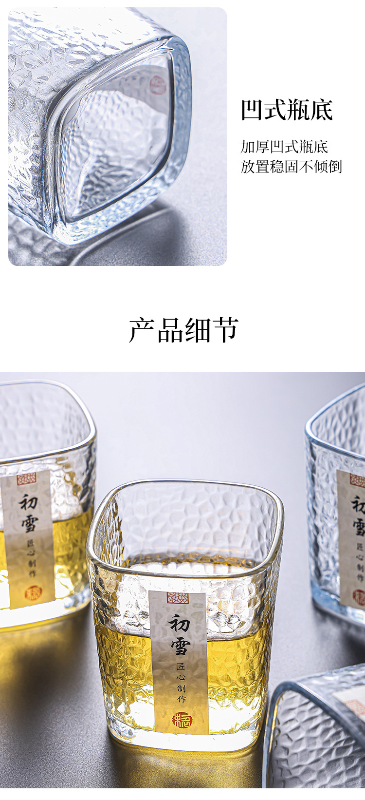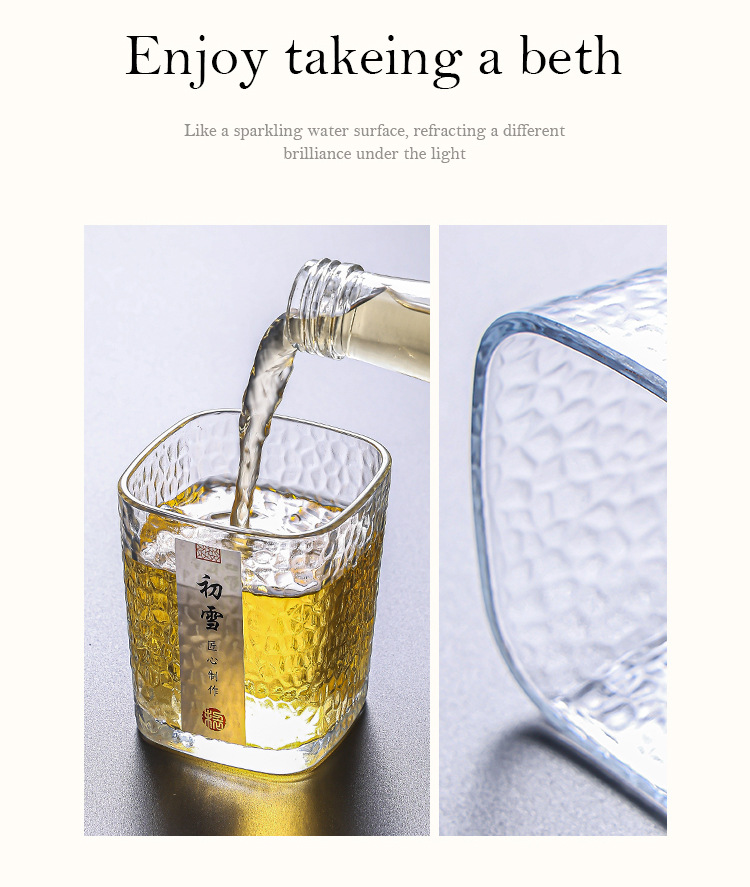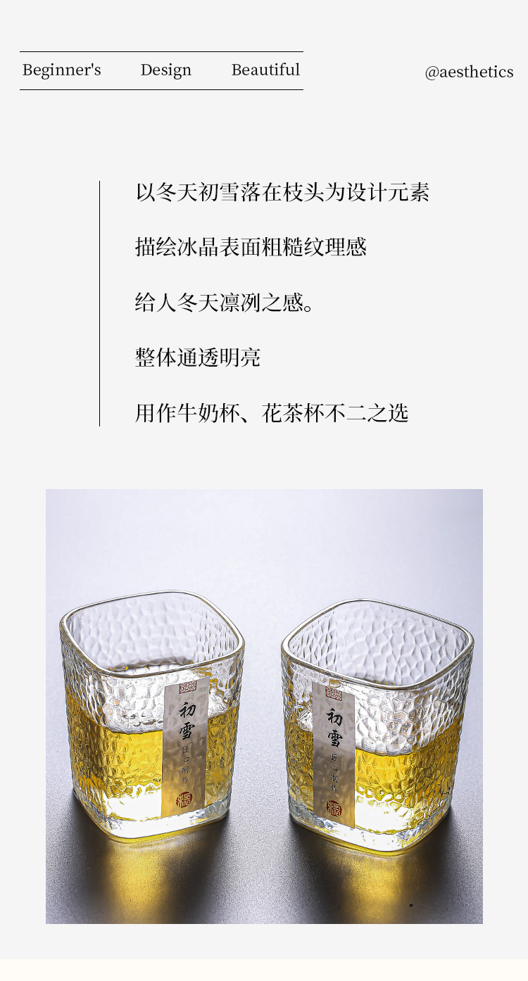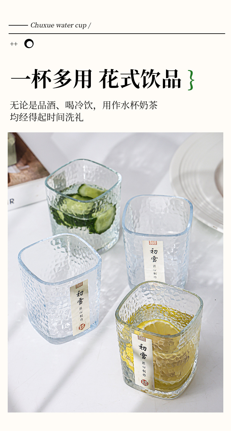 「19.9到手4只!初雪锤纹杯」初雪锤纹玻璃小茶杯 现代简约加厚玻璃杯耐热品茗杯玻璃水杯餐饮用具