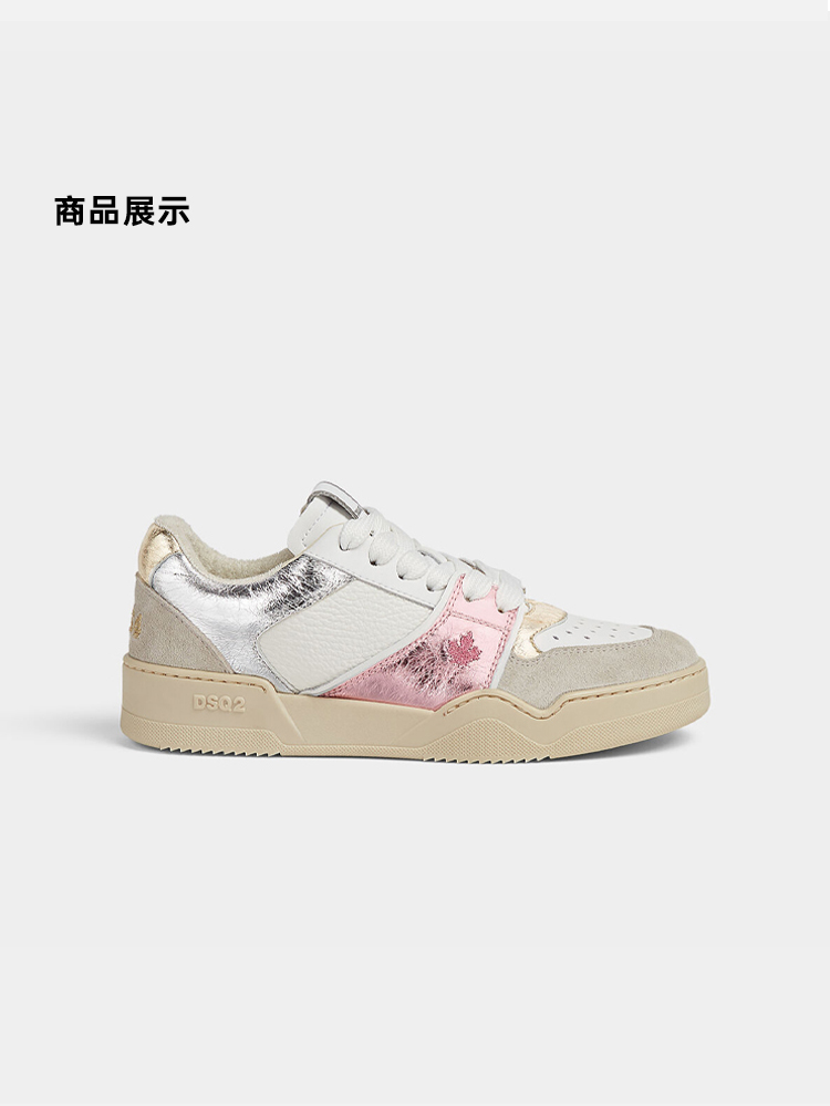 DSQUARED2 女士刺绣徽标皮革与麂皮休闲运动鞋 混色 SNW0315 23807619 M2980