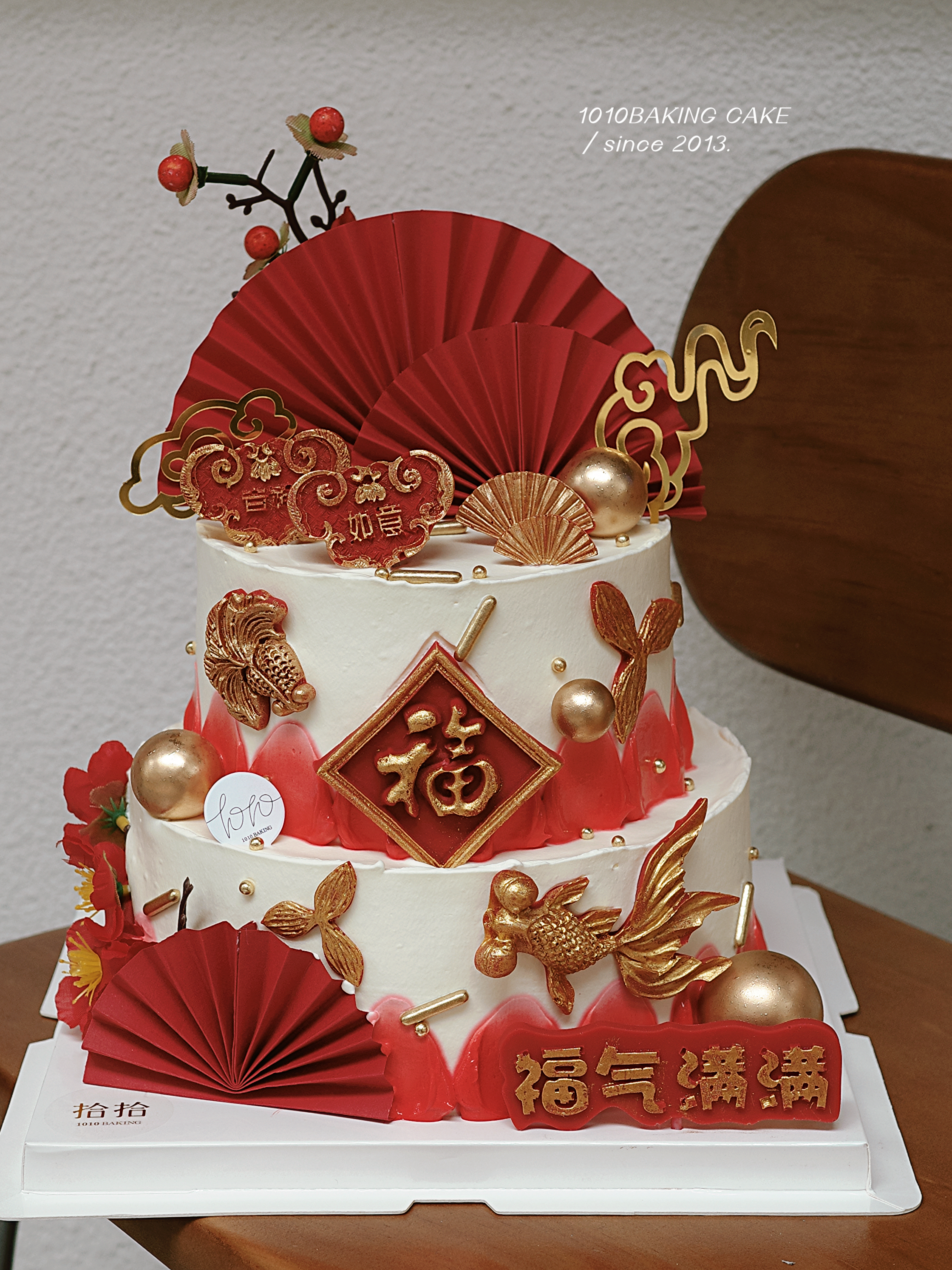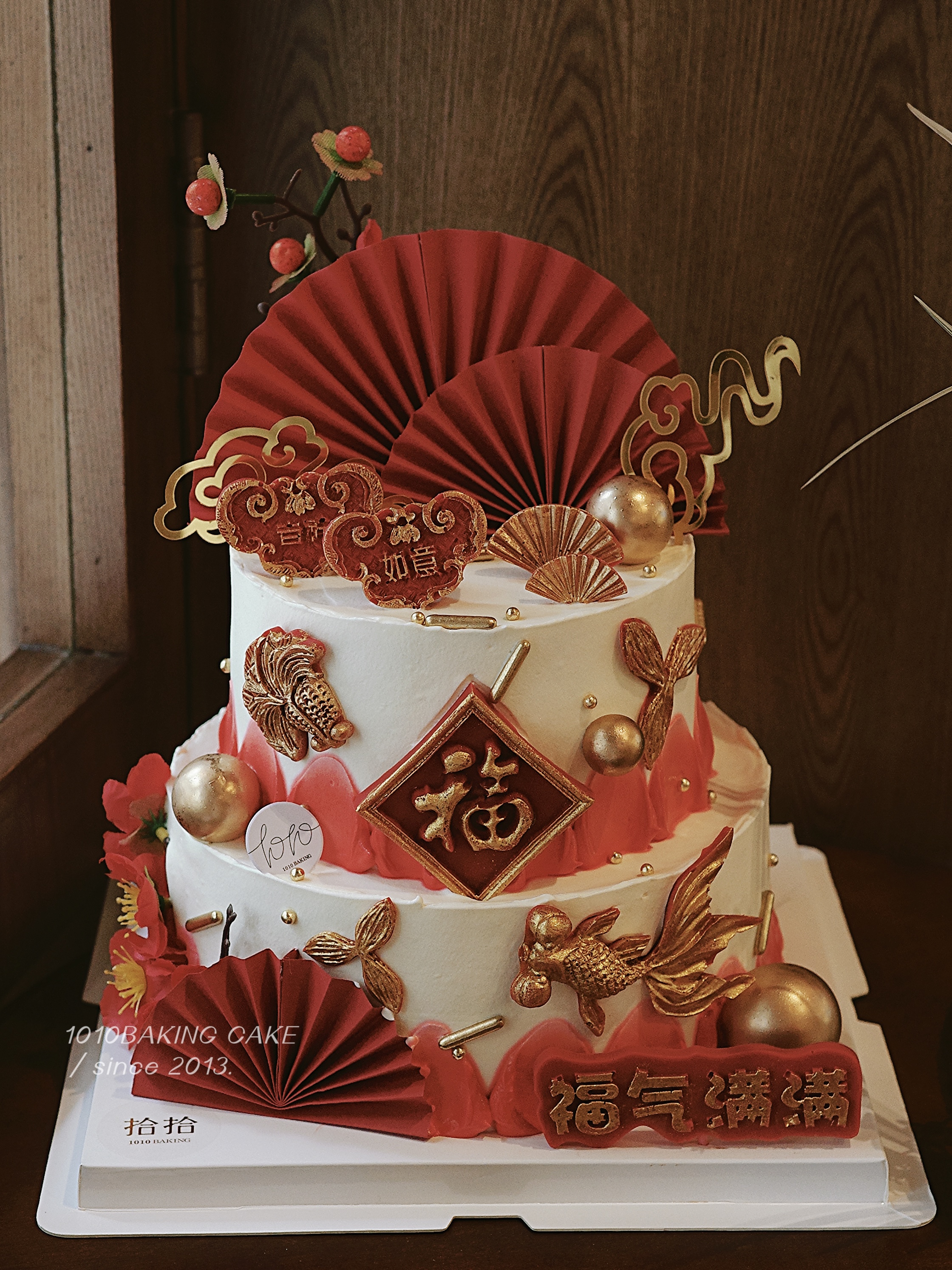 「福气满满,吉祥如意」锦鲤红金系·长辈祝寿·双层多层·100%动物奶油(提前24小时预订)