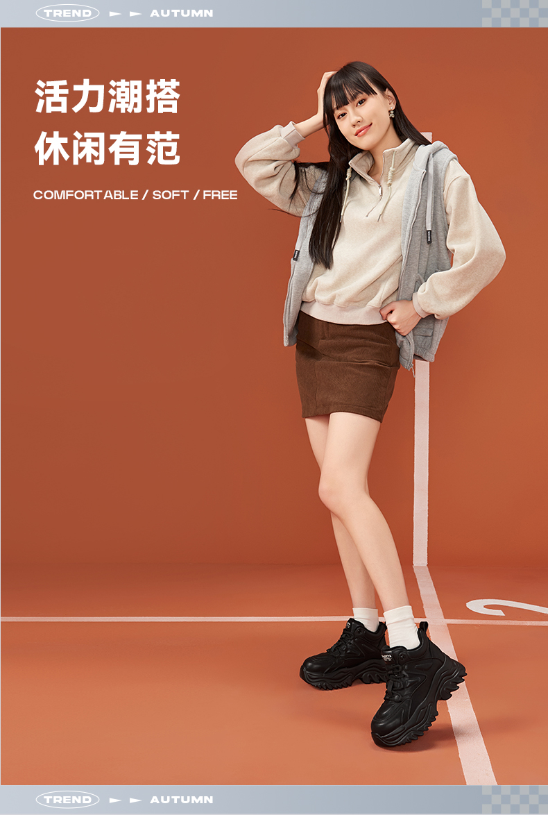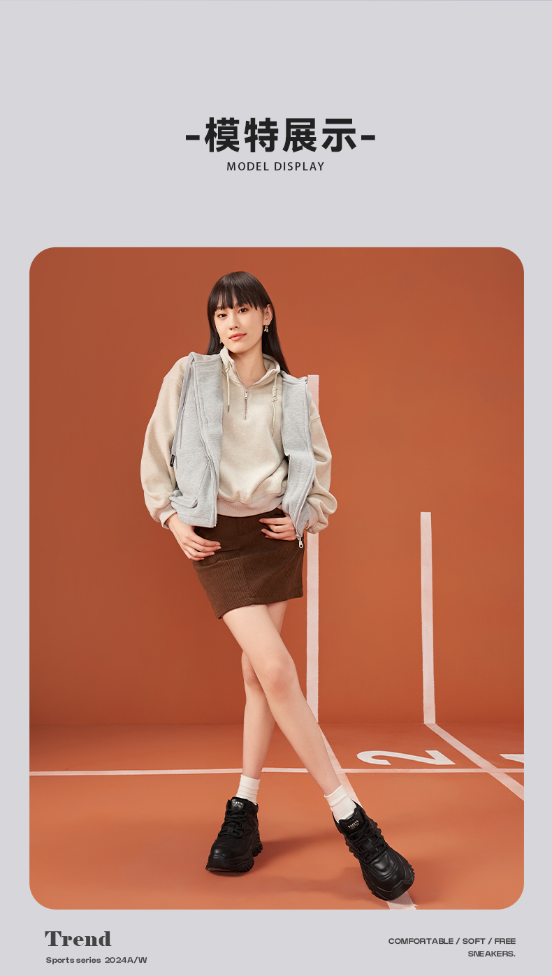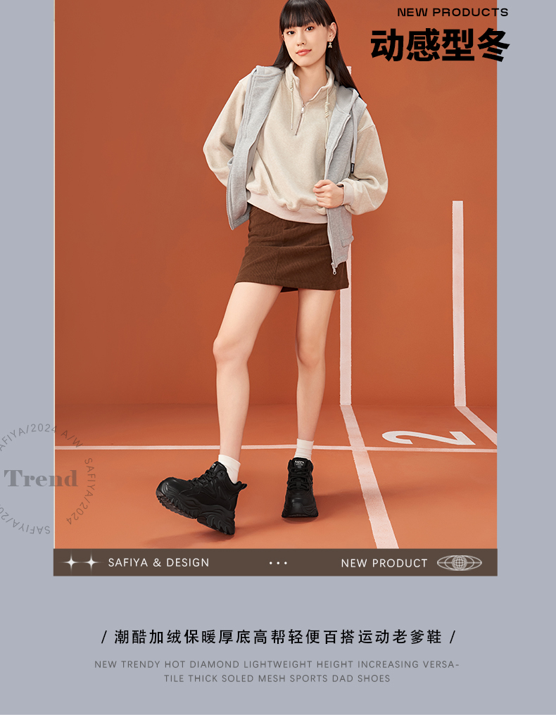 Safiya/索菲娅2024冬潮酷加绒保暖厚底高帮轻便百搭运动老爹鞋SF44112053
